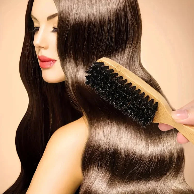 Multifunktionale Haarbürste mit natürlichen Wildschweinborsten für glattes Styling