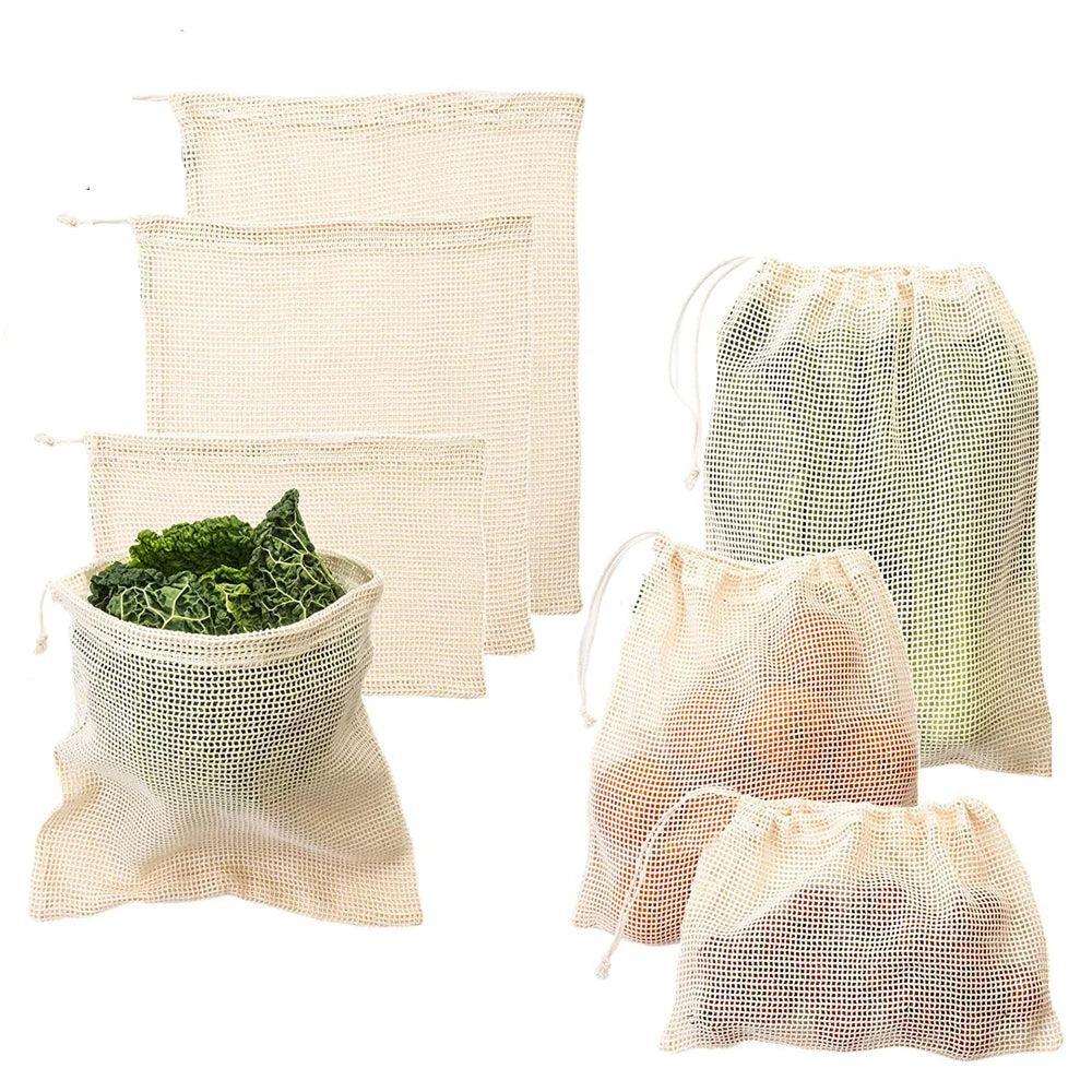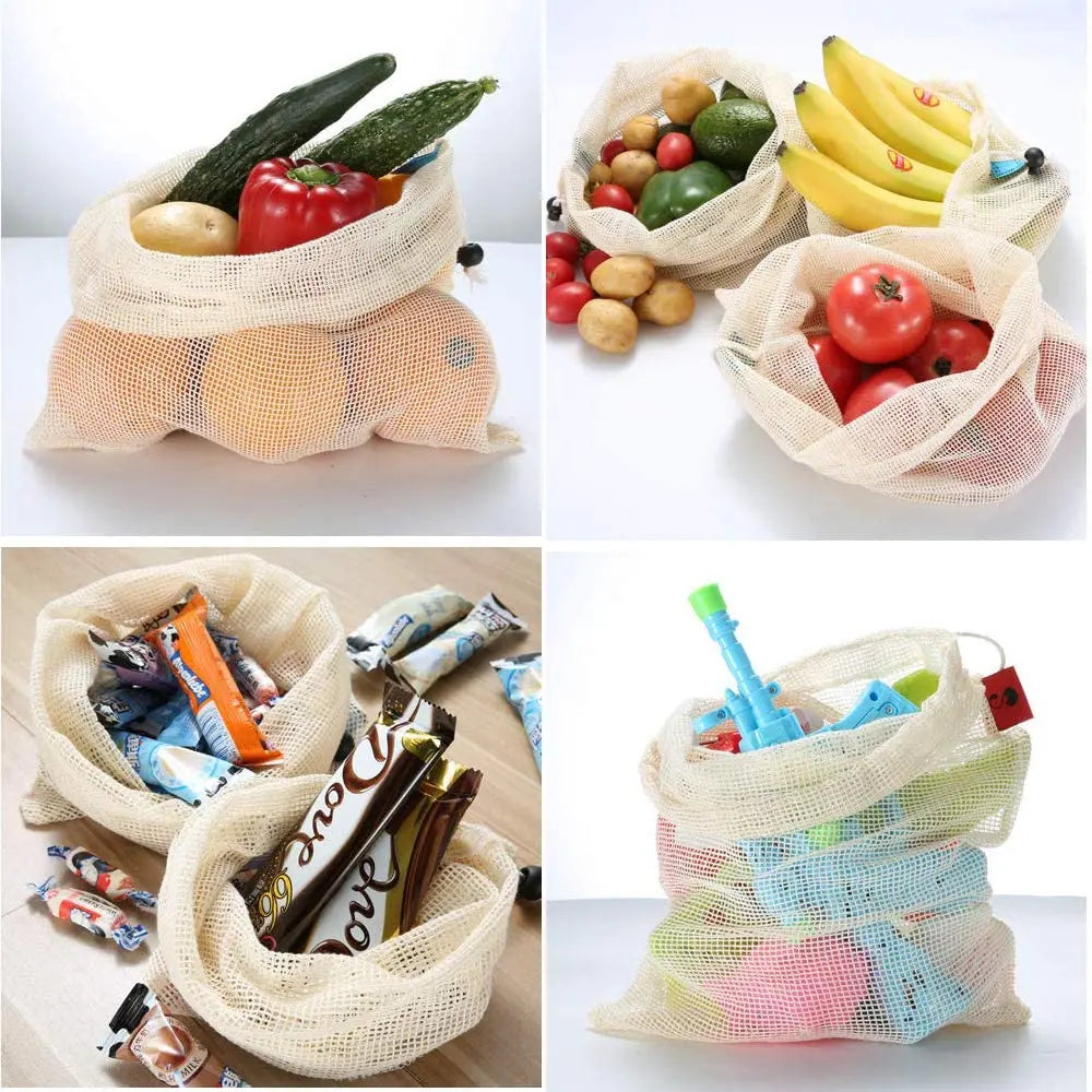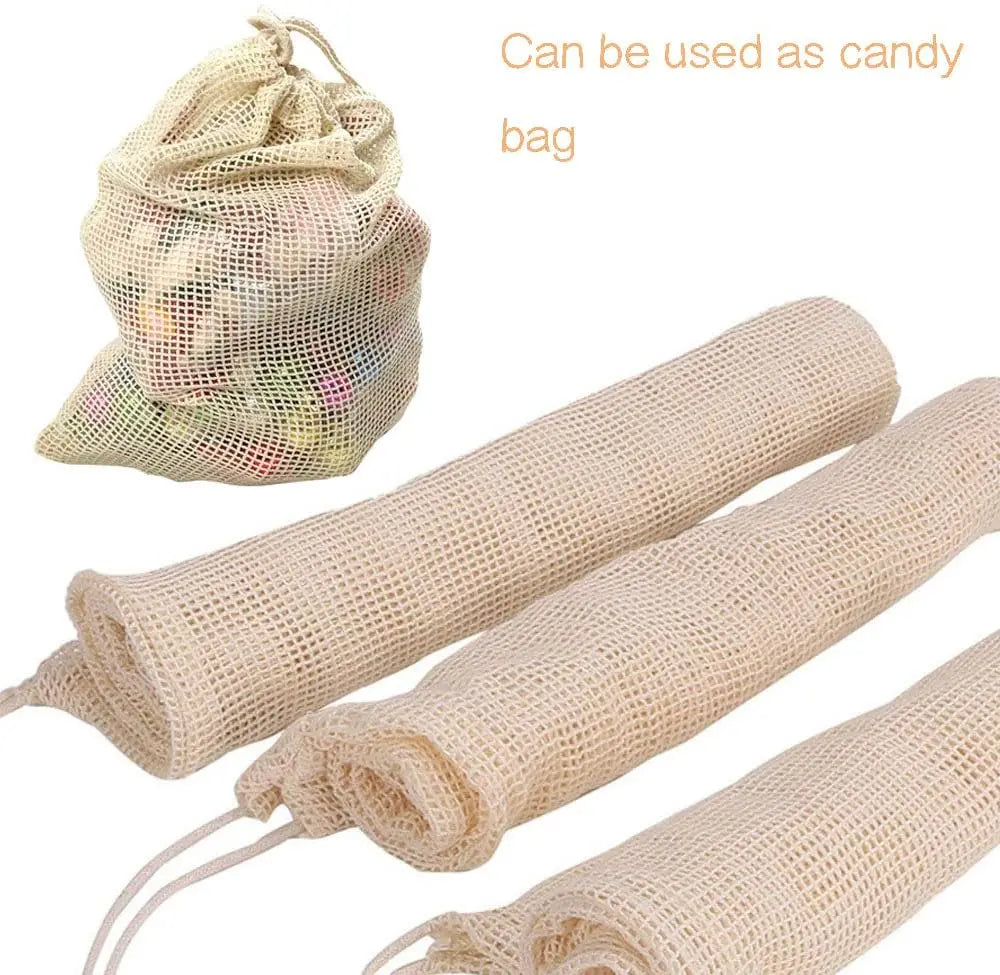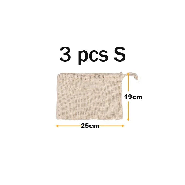 3 Stuecke Wiederverwendbare Baumwolle Netzbeutel fuer Obst und Ge