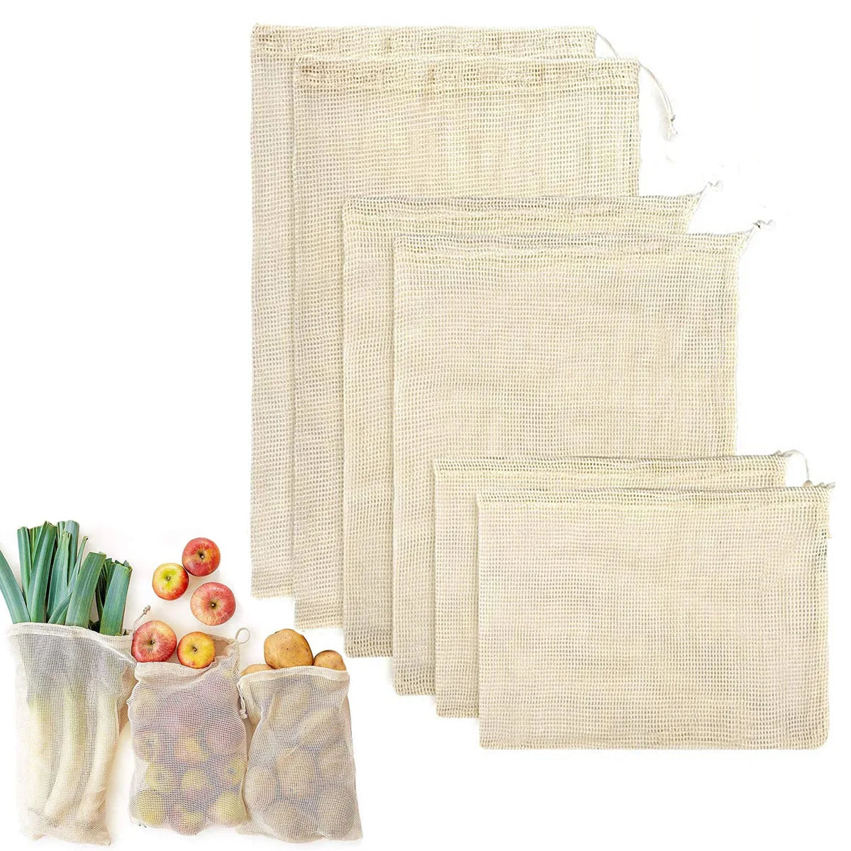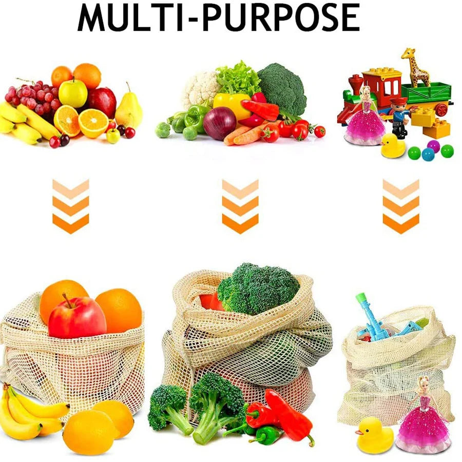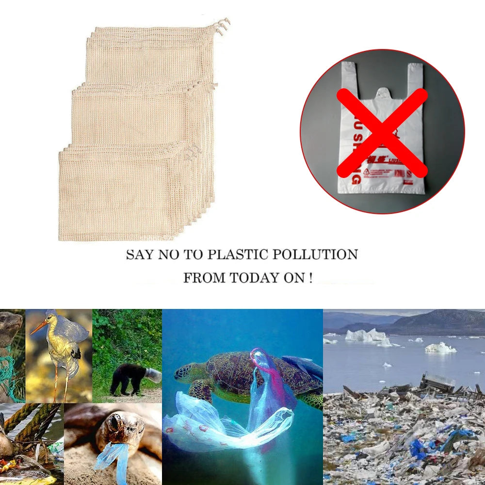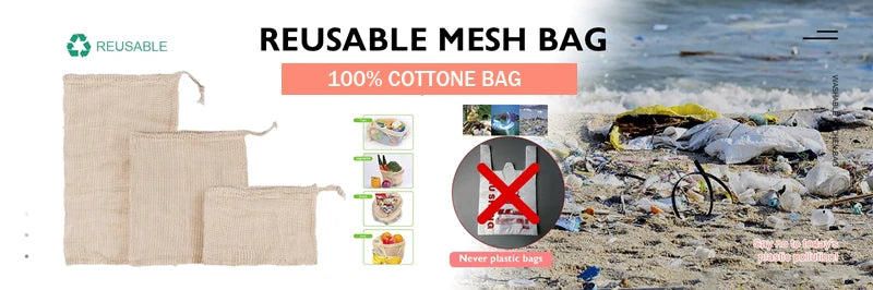 3 Stuecke Wiederverwendbare Baumwolle Netzbeutel fuer Obst und Ge