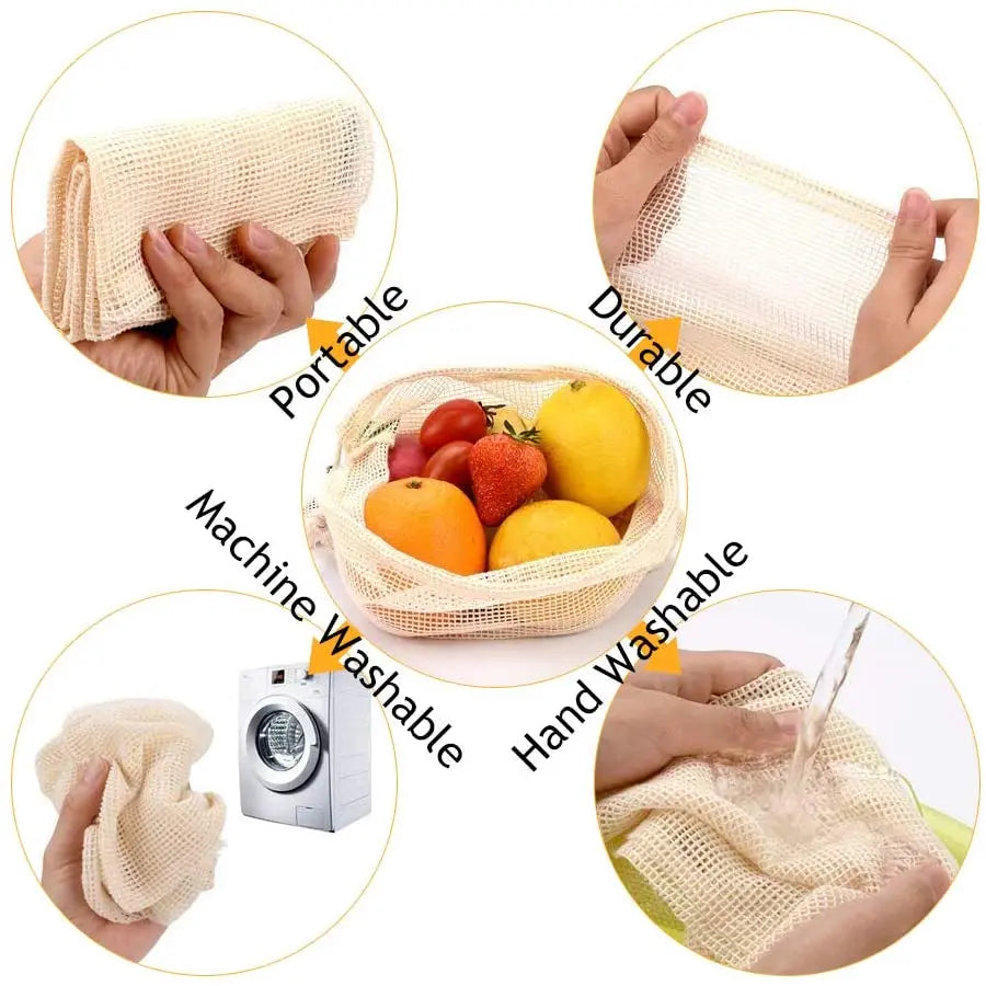 Jeder Netzbeutel ist aus strapazierfaehigen Pflanzenfasern gefertigt und bietet eine atmungsaktive Umgebung fuer Ihre Fruechte und Ihr Gemuese. Das spezielle Gitterdesign ermoeglicht eine gute Luftzirkulation, was die Haltbarkeit Ihrer Einkaeufe verbessern kann. Der praktische Kordelzugverschluss sorgt dafuer, dass Ihre Produkte sicher verstaut sind und nicht herausfallen. Die Beutel sind leicht, faltbar und koennen einfach in Ihrer Einkaufstasche verstaut werden. Nach Gebrauch lassen sie sich problemlos reinigen und sind sofort wieder einsatzbereit. Ein einfacher Schritt zu einem nachhaltigeren Lebensstil.