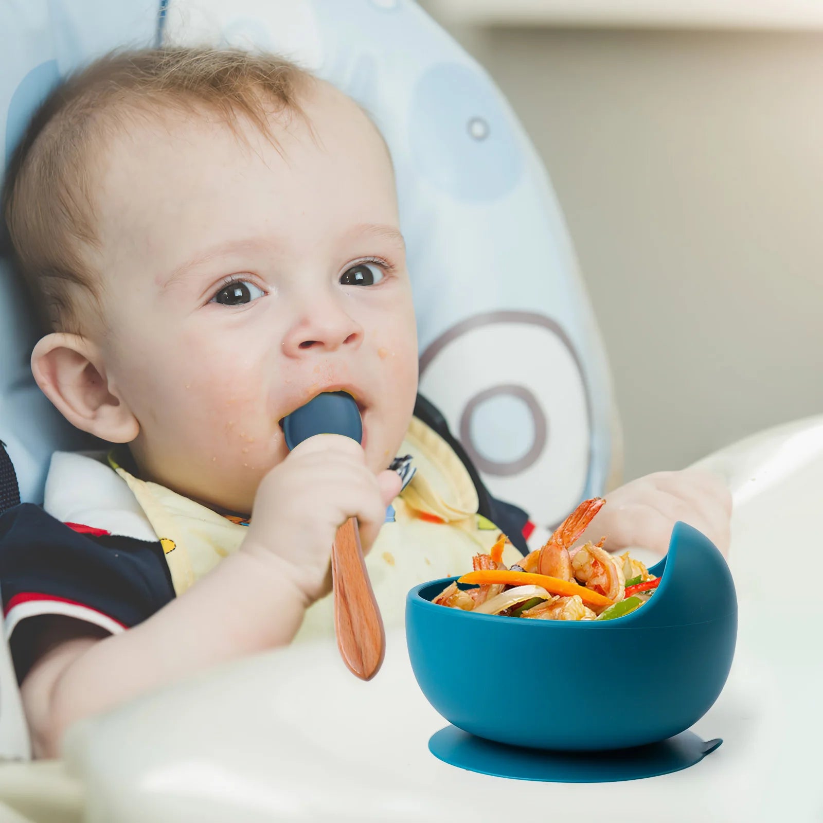 Dieses 3-teilige Fütterungsset aus BPA-freiem Silikon ist ideal für Kinder von 3 bis 12 Jahren. Es beinhaltet eine Saugeschüssel mit sicherem Halt auf glatten Oberflächen und einen passenden Löffel. Das Set ist leicht zu reinigen und unterstützt Kinder beim selbstständigen Essen.