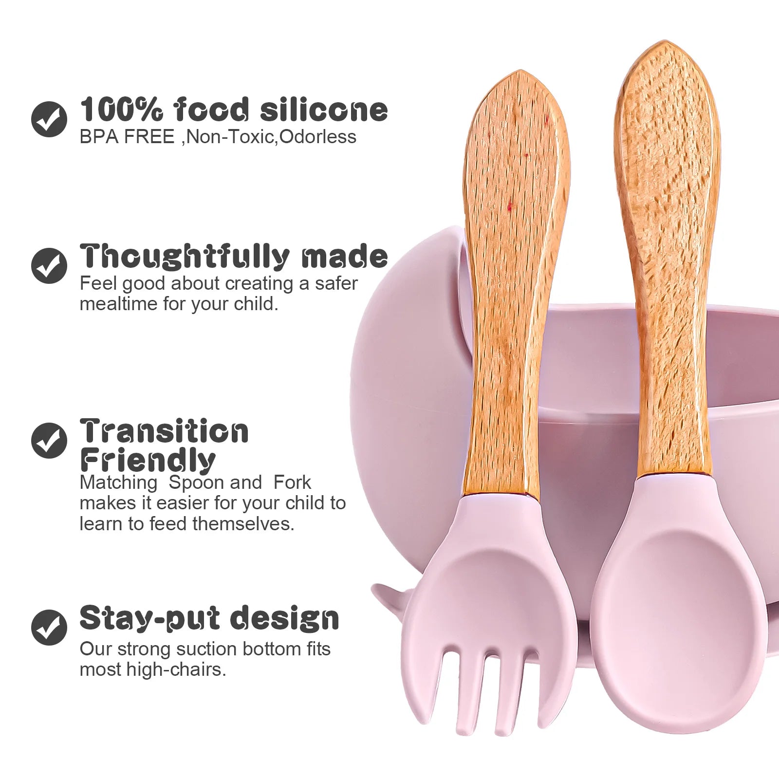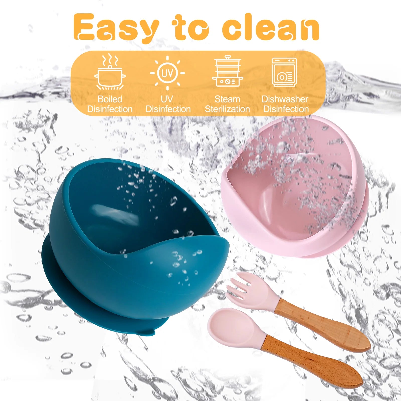 3-teiliges Silikon Baby Fütterungsset mit wasserdichter Saugeschüssel und Löffel