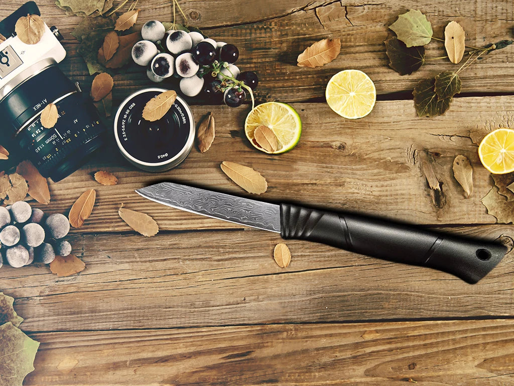 Erleben Sie müheloses und präzises Schneiden mit diesem hochwertigen Gemüsemesser aus 67-lagigem Damaststahl mit VG10 Kern. Ideal geschaffen für genaues Schälen und Schneiden, erleichtert es Ihre Küchenarbeit erheblich.