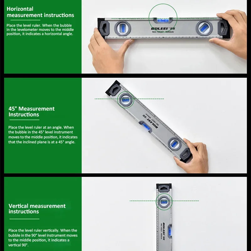 Vielseitiges 3-in-1 Wasserwaage-Lineal für präzise Messungen