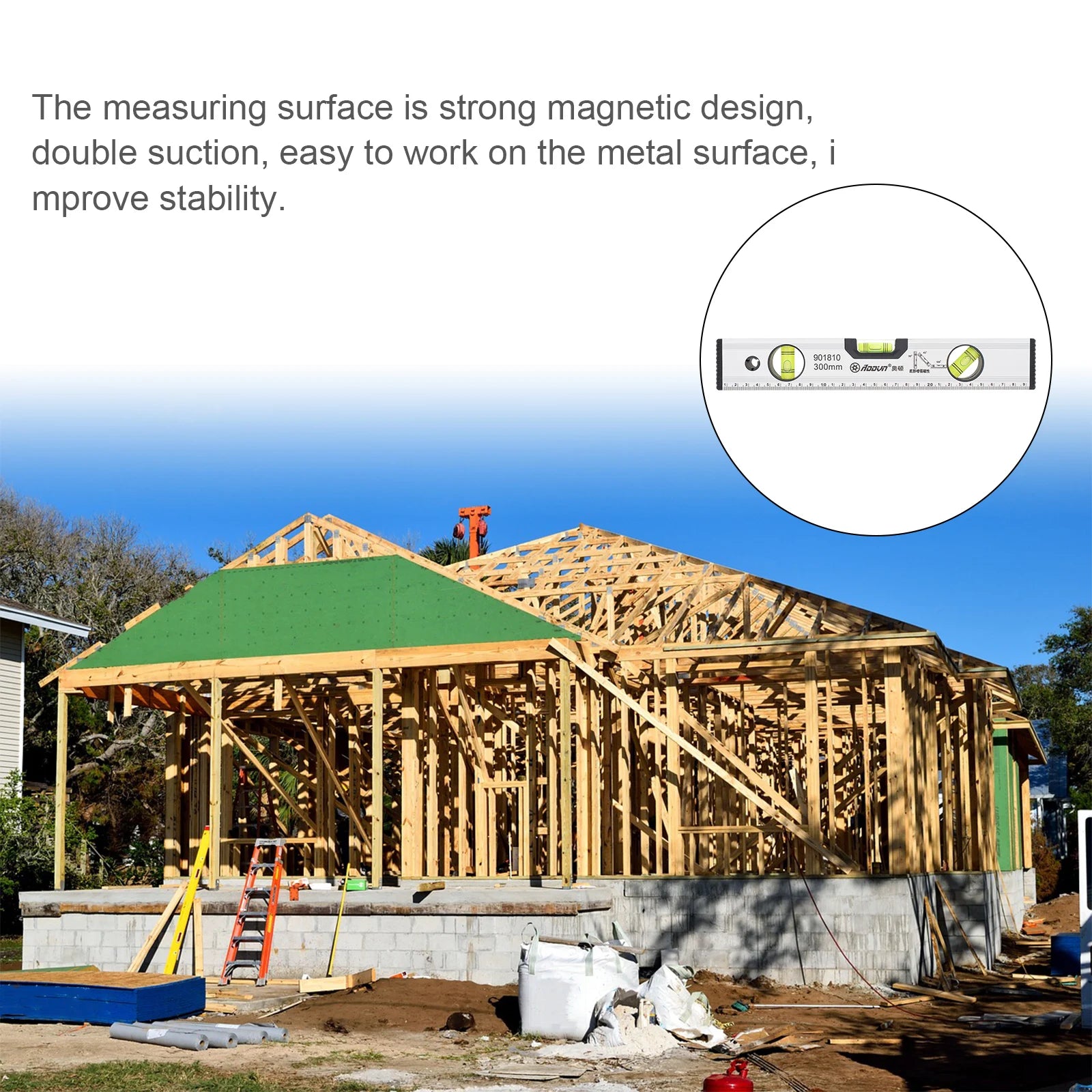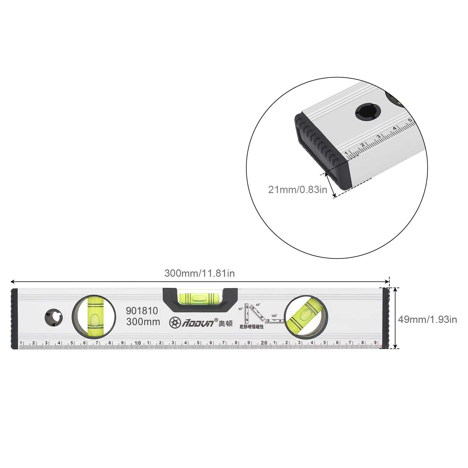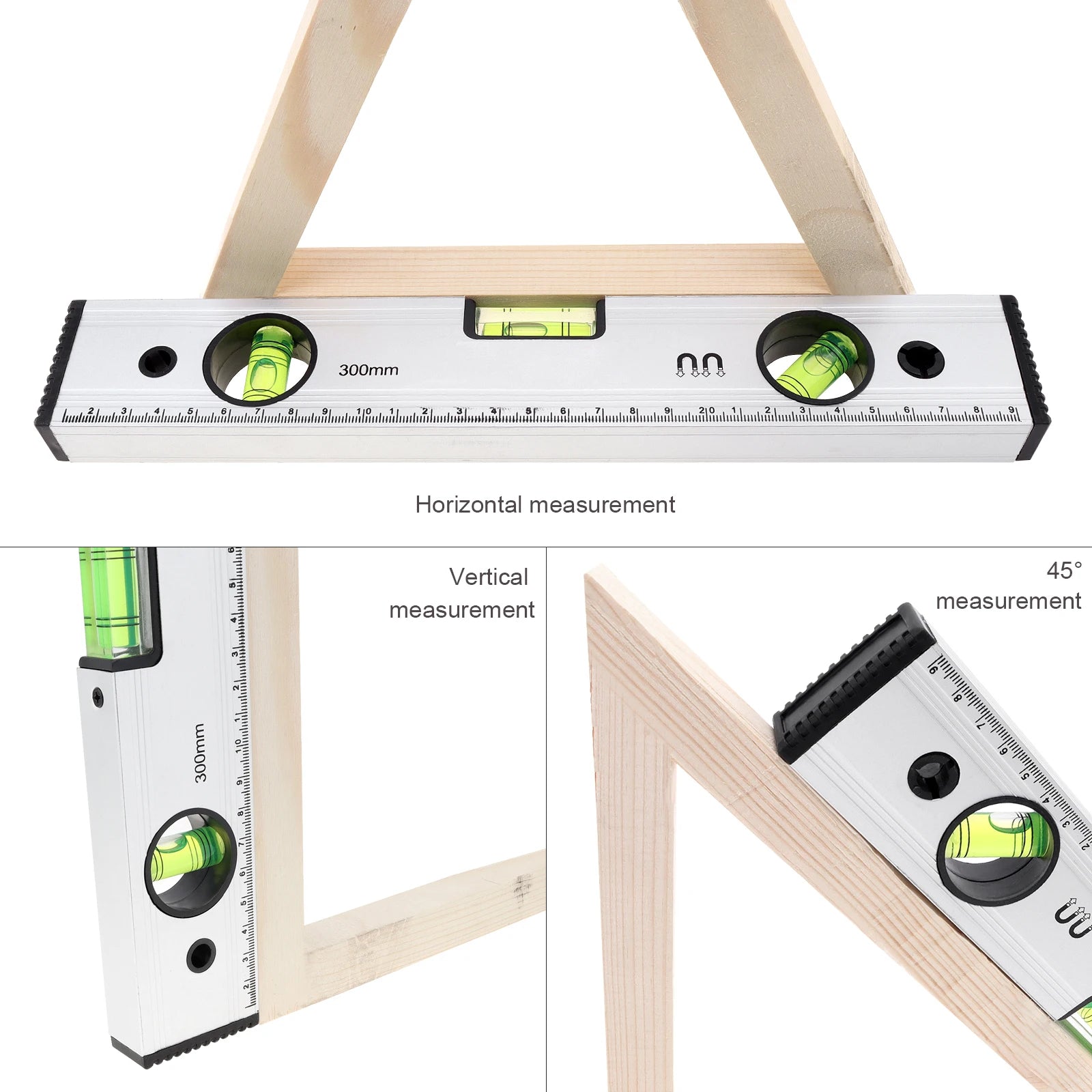 Dieses 300mm lange Magnetlineal aus Aluminiumlegierung bietet hohe Genauigkeit von 1mm und ist ideal für Bau- und Dekorationsmessungen. Das moderne Blister-Design mit drei integrierten Libellen ermöglicht einfache und präzise Ausrichtung bei vielfältigen Anwendungen.
