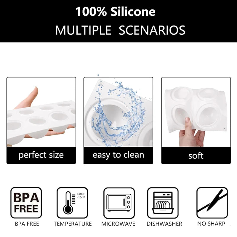 Diese hochwertige Silikonform ermöglicht das Backen und Formen von kugelförmigen Mousse Kuchen, Schokoladendesserts, Trüffeln und anderem Gebäck. Die flexible und hitzebeständige Form ist einfach zu reinigen und vielseitig einsetzbar.