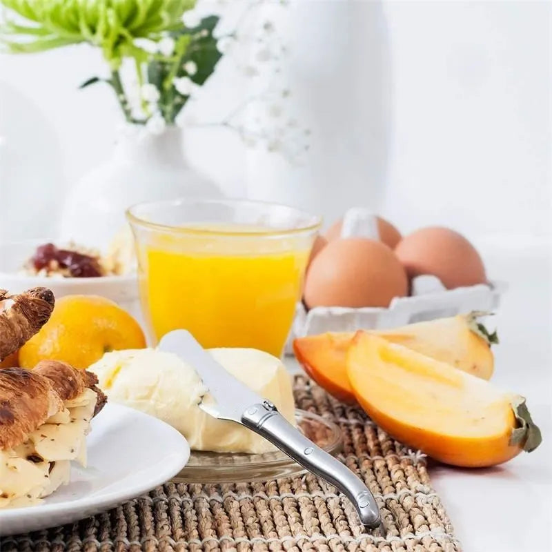 - Robuster Edelstahl sorgt für langlebige Messer, die scharf und effizient Butter und Käse schneiden.