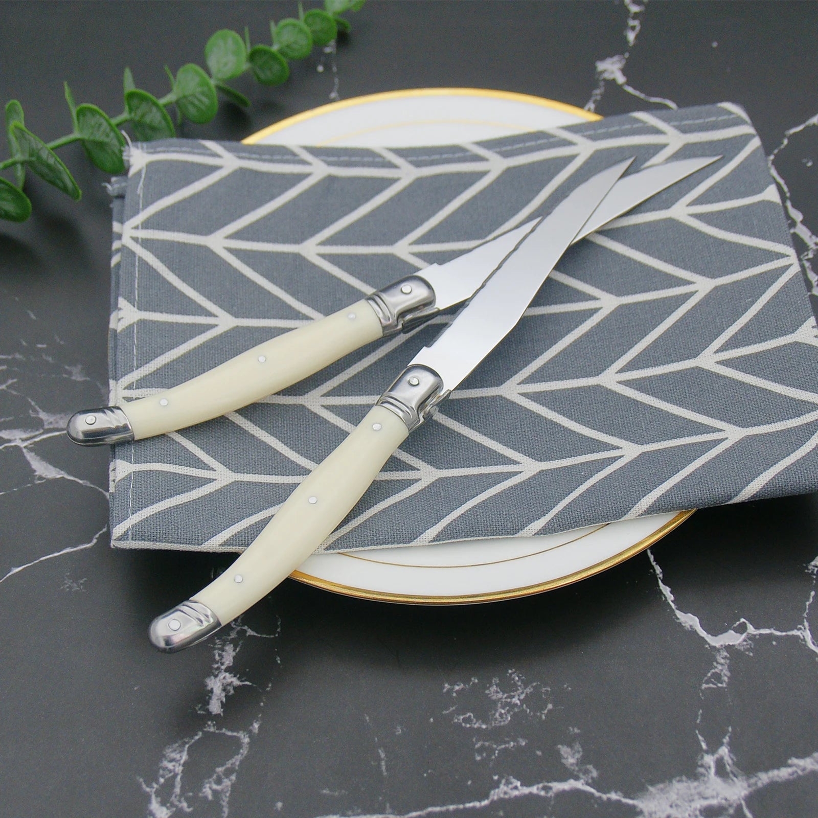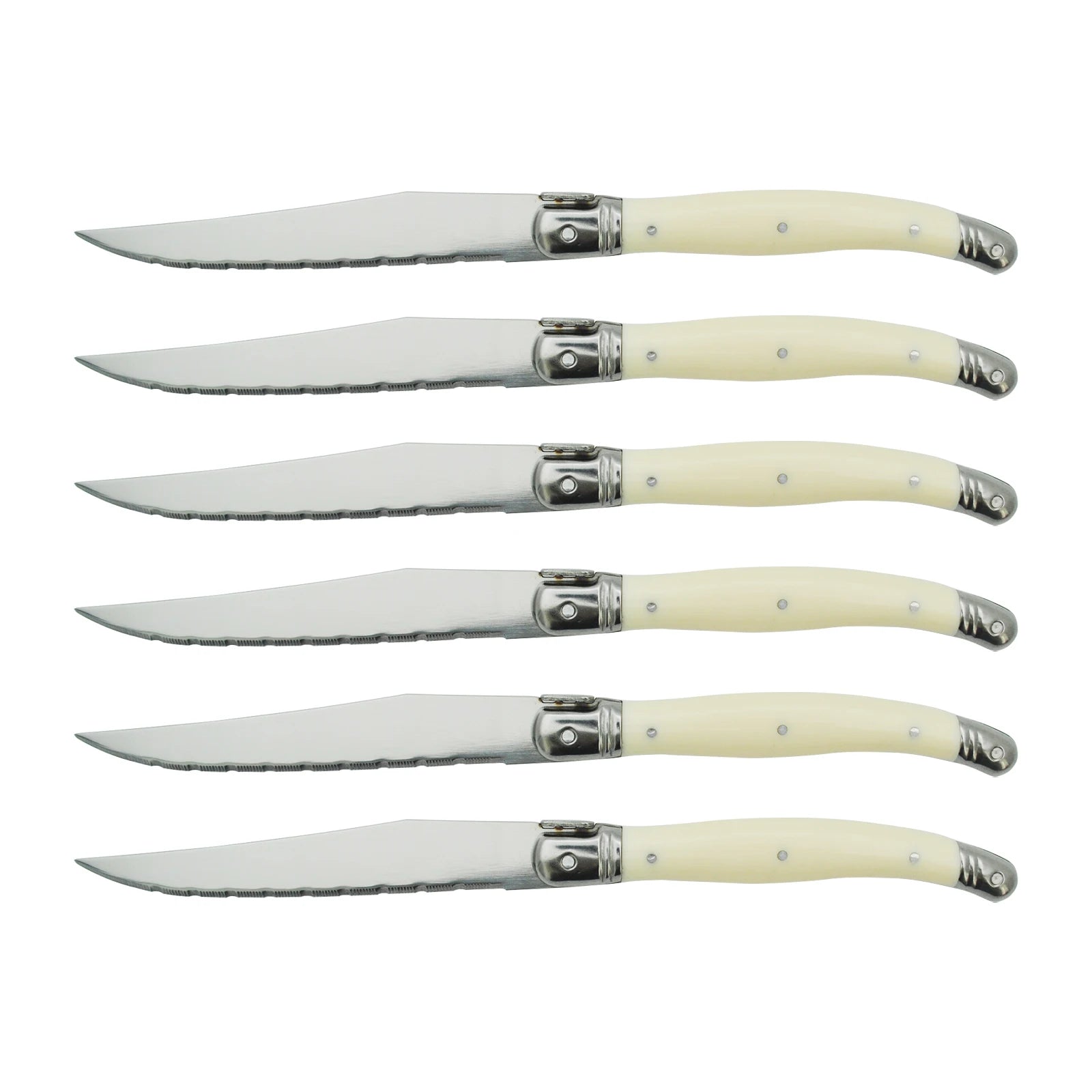 Laguiole Steakmesser Set mit weißem Kunststoffgriff für Haushalt und Dinner