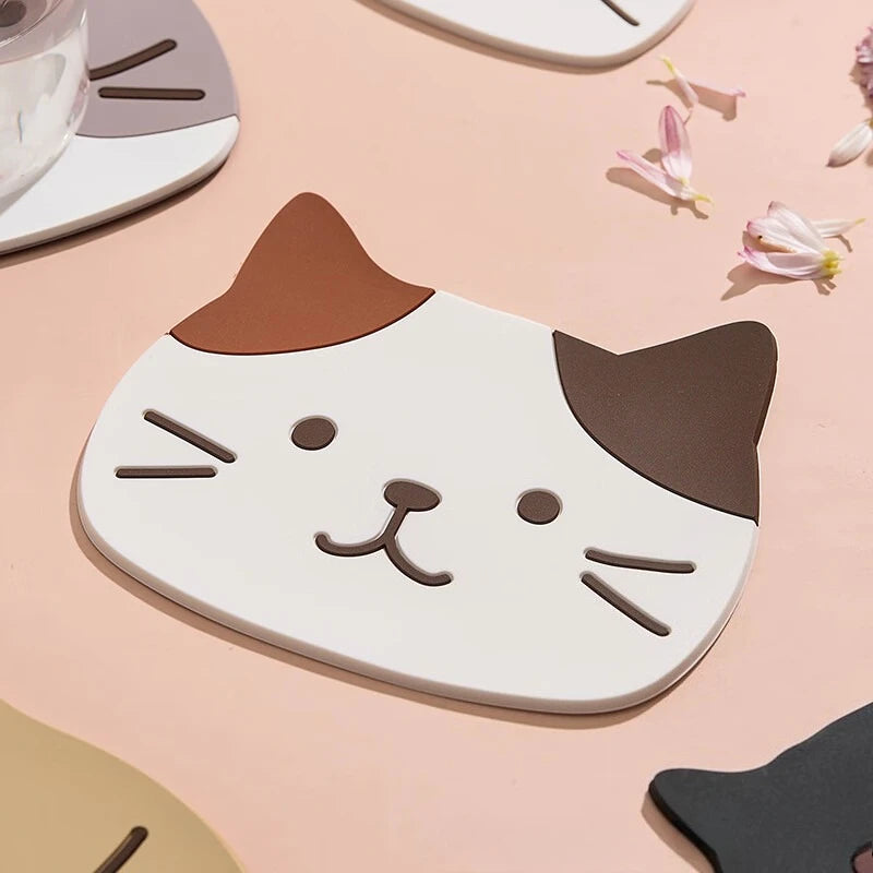 5er Set Süße Katzen Silikon Untersetzer für Tassen und Getränke