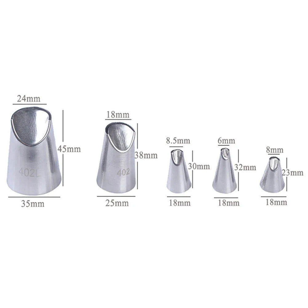 Edelstahl Kuchen Spritztüllen Set 5-teilig – Präzise Dekowerkzeuge