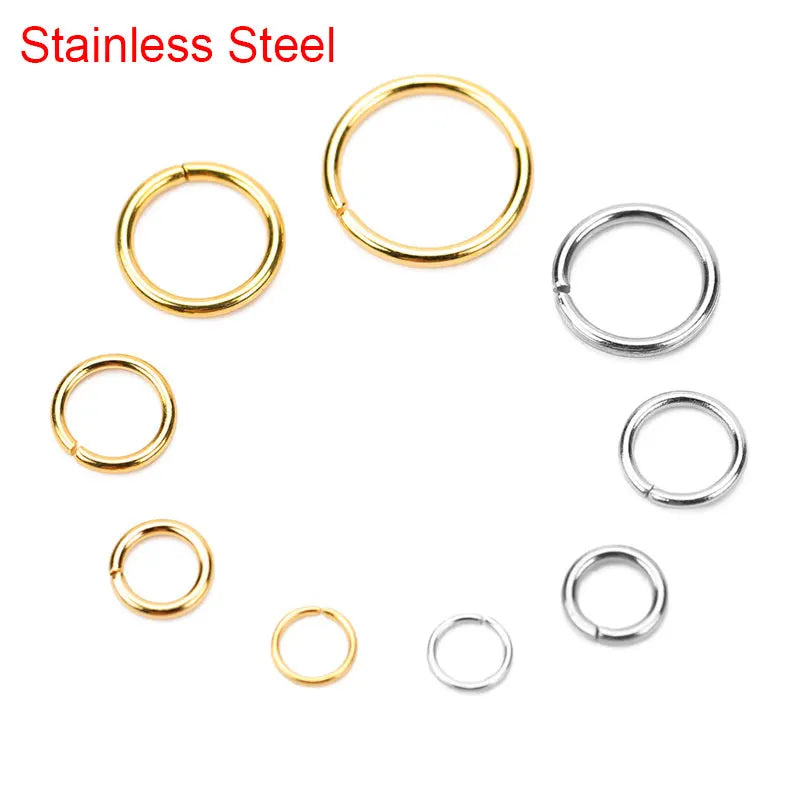 Dieses Set enthält 50 oder 100 offene Biegeringe aus Edelstahl in den Größen 4, 5, 6, 8 und 10 mm. Ideal als Spaltringe und Verbinder für die Herstellung und Reparatur von Schmuckstücken wie Halsketten und Armbändern.