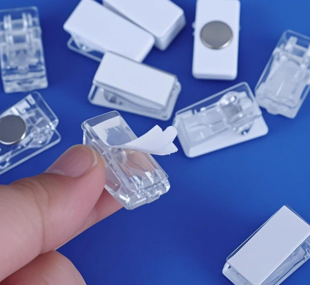 Dank ihrer starken Klebefläche und der federbelasteten Mechanik bieten sie zuverlässigen Halt auf verschiedenen glatten Oberflächen. Ob im Wohnzimmer, Schlafzimmer oder im Büro – diese tragbaren Clips sind Ihre flexiblen Helfer für Ordnung und Gestaltung.