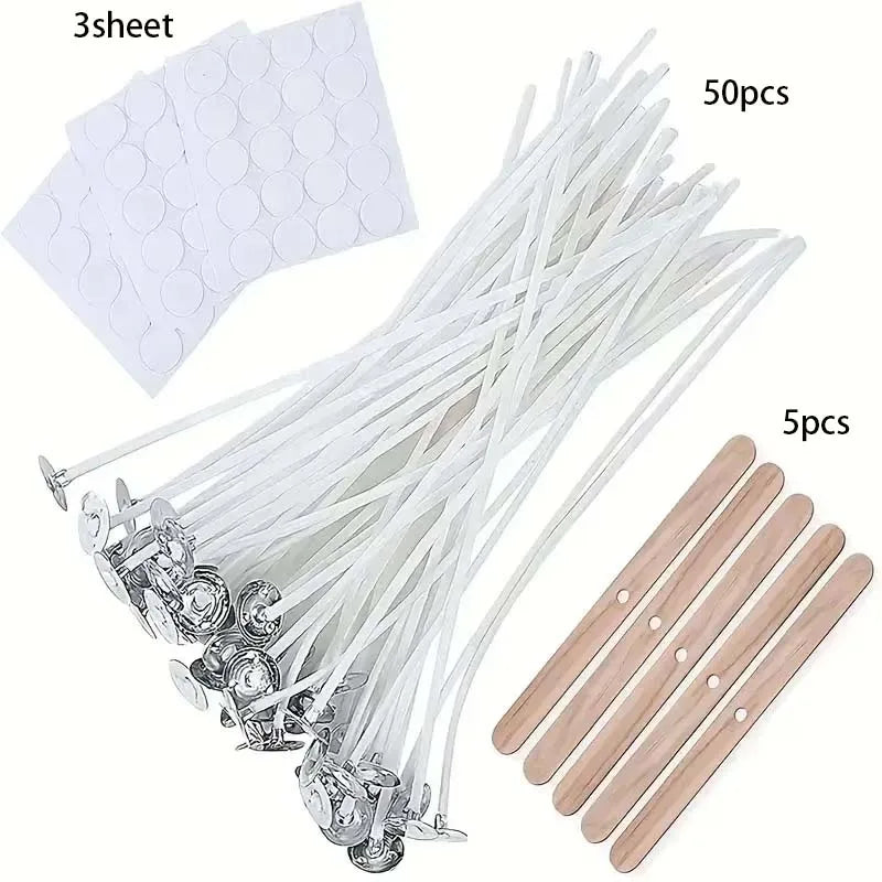 50-teiliges Kerzendocht Set mit Haltern und Klebepunkten für Kerzenherstellung