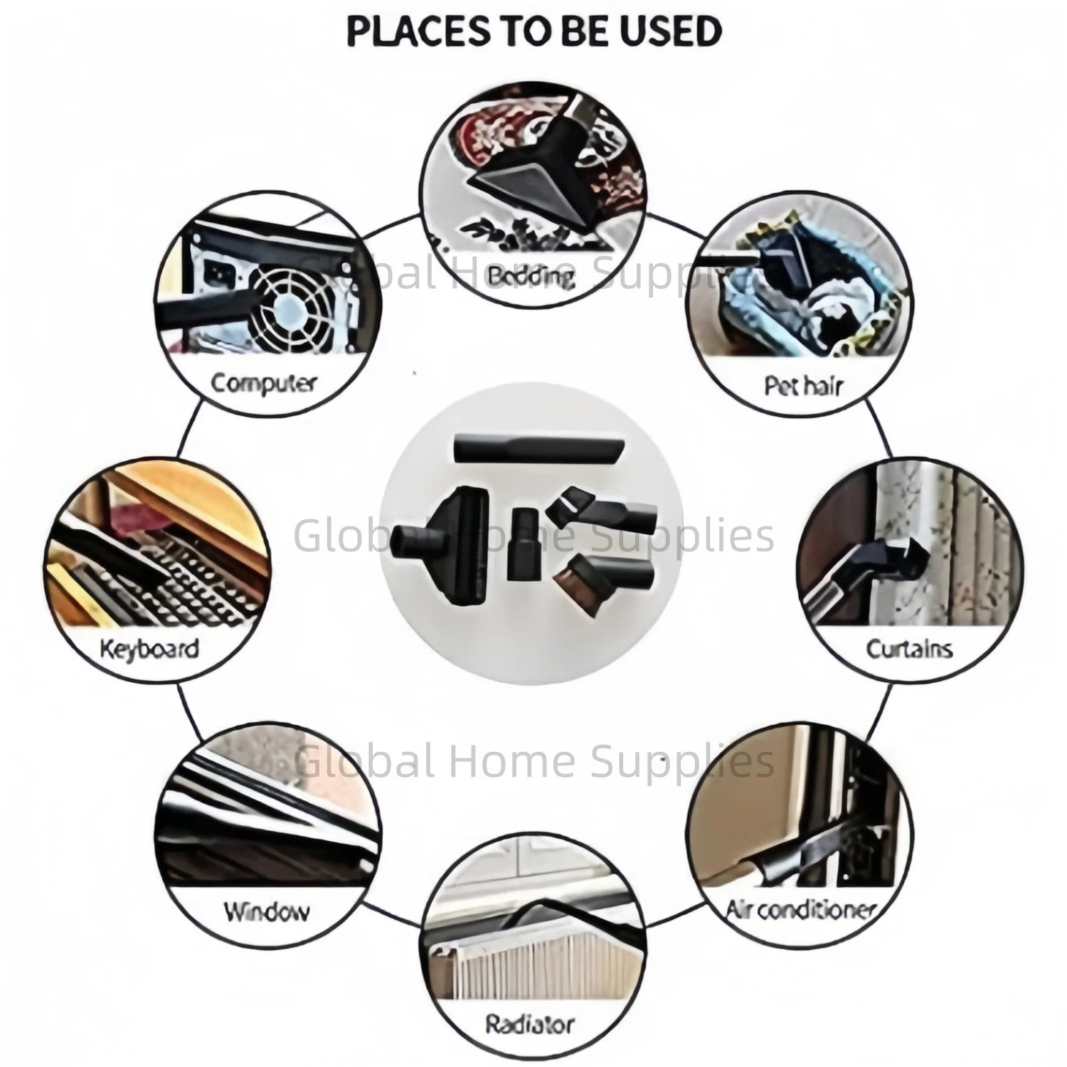 Dieses Set eignet sich ideal für verschiedene Staubsaugermodelle mit 32mm Anschluss. Enthalten sind praktische Adapter, Pinsel und Düsen, die eine flexible Reinigung ermöglichen und die Saugleistung optimieren.