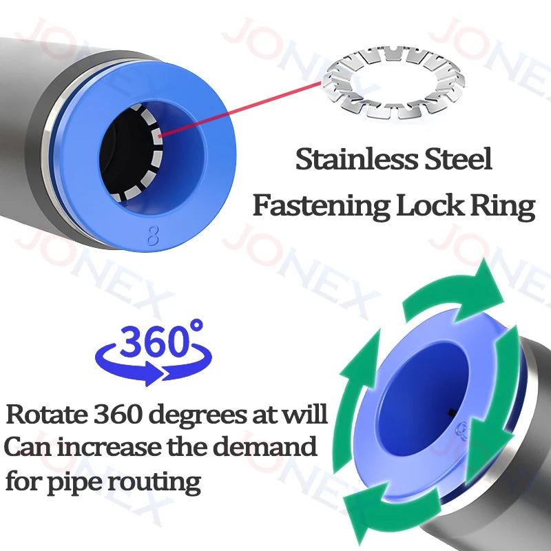 Diese pneumatischen Armaturen bieten schnelle Push-in Verbindungen für Schläuche mit 4mm, 6mm, 8mm und 10mm Außendurchmesser. Geeignet für PU, Nylon, Polyurethan-Schläuche, gewährleisten sie zuverlässige Verbindungen für Luft- und Vakuumanwendungen innerhalb eines Temperaturbereichs von 0 bis 60°C.
