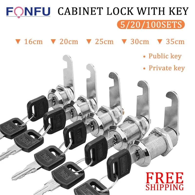 Dieses Set enthält 5 Metallzylinder-Schlösser mit passenden Schlüsseln, ideal für Schränke, Spinde, Briefkästen und Schubladen. Die cam lock Schlösser sind in verschiedenen Größen von 16mm bis 30mm erhältlich und bieten zuverlässigen Schutz für Ihre Wertgegenstände.