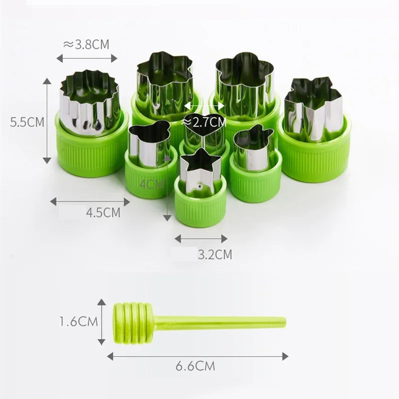 Vielseitiges Set aus Edelstahl mit herz- und blumenförmigen Obstschneidern