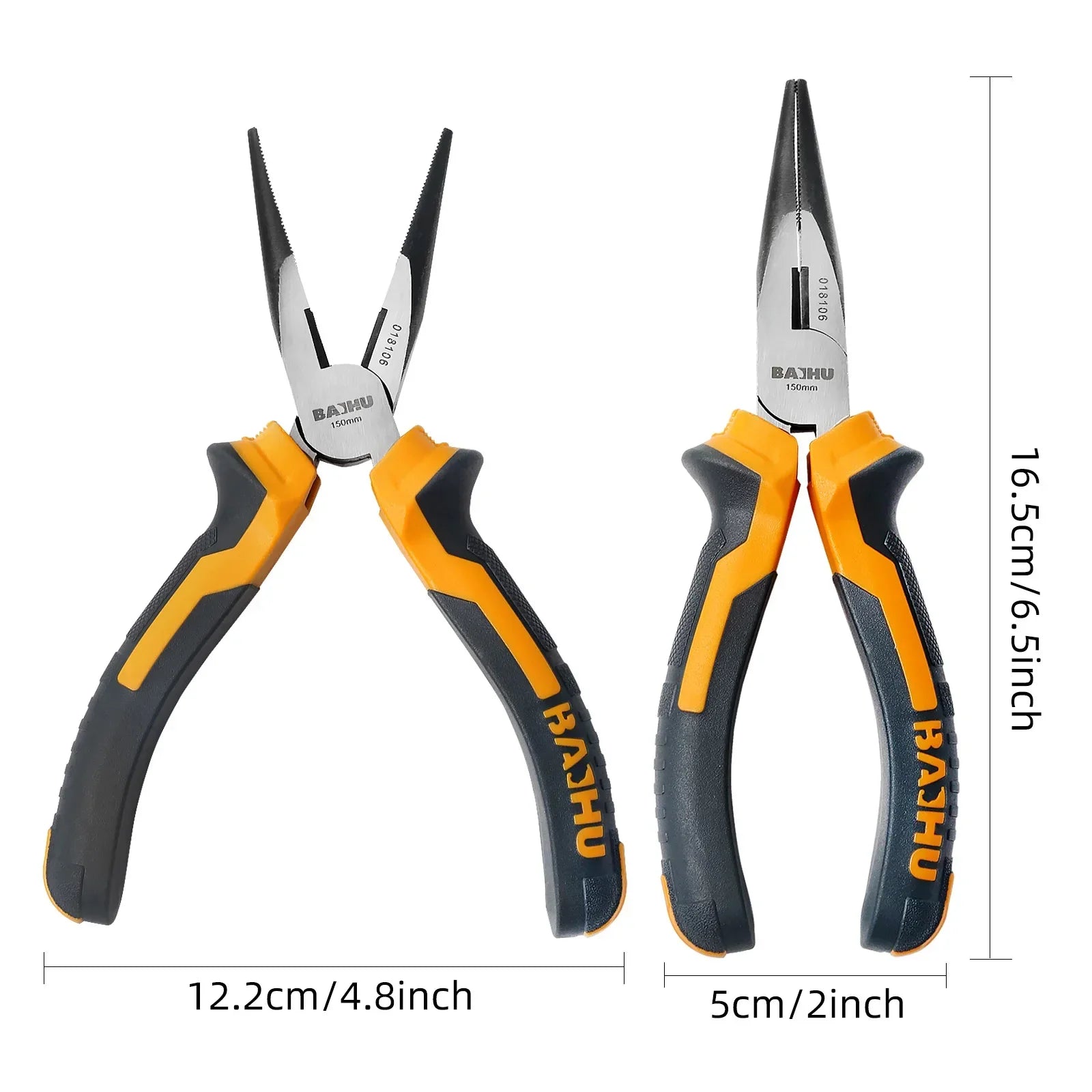 Diese 6/8 Zoll Spitzzange eignet sich ideal zum Klemmen, Abisolieren und für Reparaturarbeiten. Das multifunktionale Design unterstützt Wartungsaufgaben und sorgt für präzises Arbeiten bei Elektrik- und Handwerksprojekten.