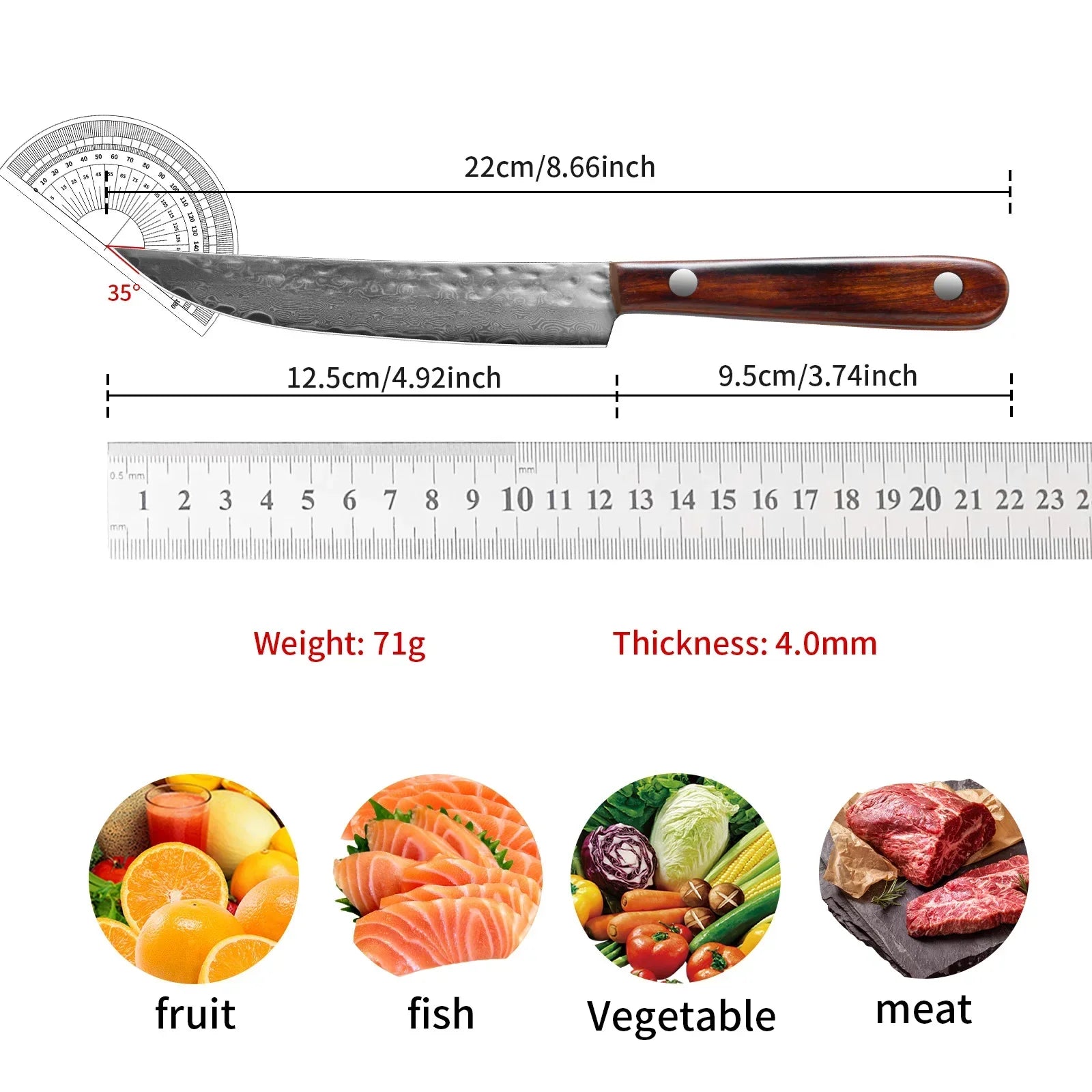 67 Lage geschmiedetes Damaskus Stahl Steakmesser mit Massivholzgriff