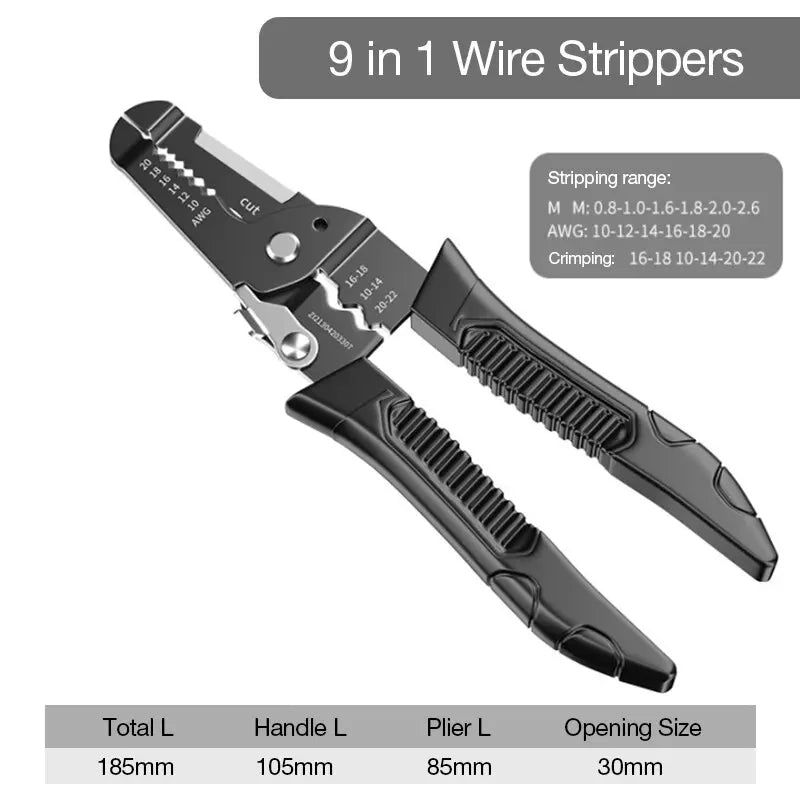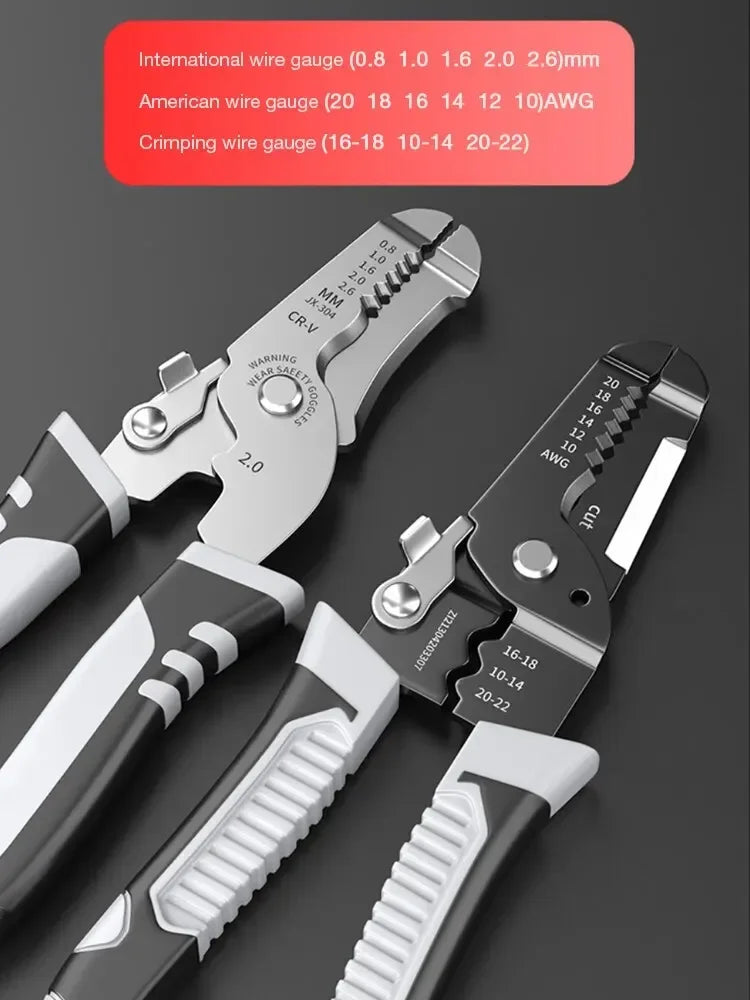 Multifunktionale Abisolierzange mit Crimp- und Schneidefunktion für Elektriker