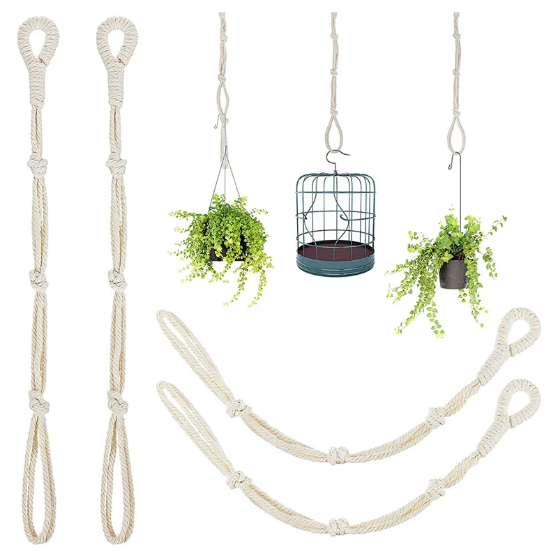Makramee Pflanzenaufhänger 8er Set Beige mit Verlängerungsseilen