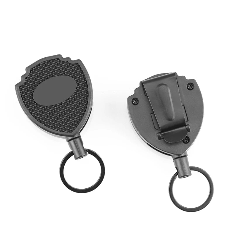 Diese vielseitige Abzeichenrolle ist mit einem stabilen Karabiner und einer austauschbaren Stahlschnur ausgestattet, ideal für Schlüsselanhänger und Paracord-Zubehör. Die ausziehbare Funktion ermöglicht einfachen Zugriff auf Schlüssel oder Ausweise, ohne die Rolle abnehmen zu müssen.