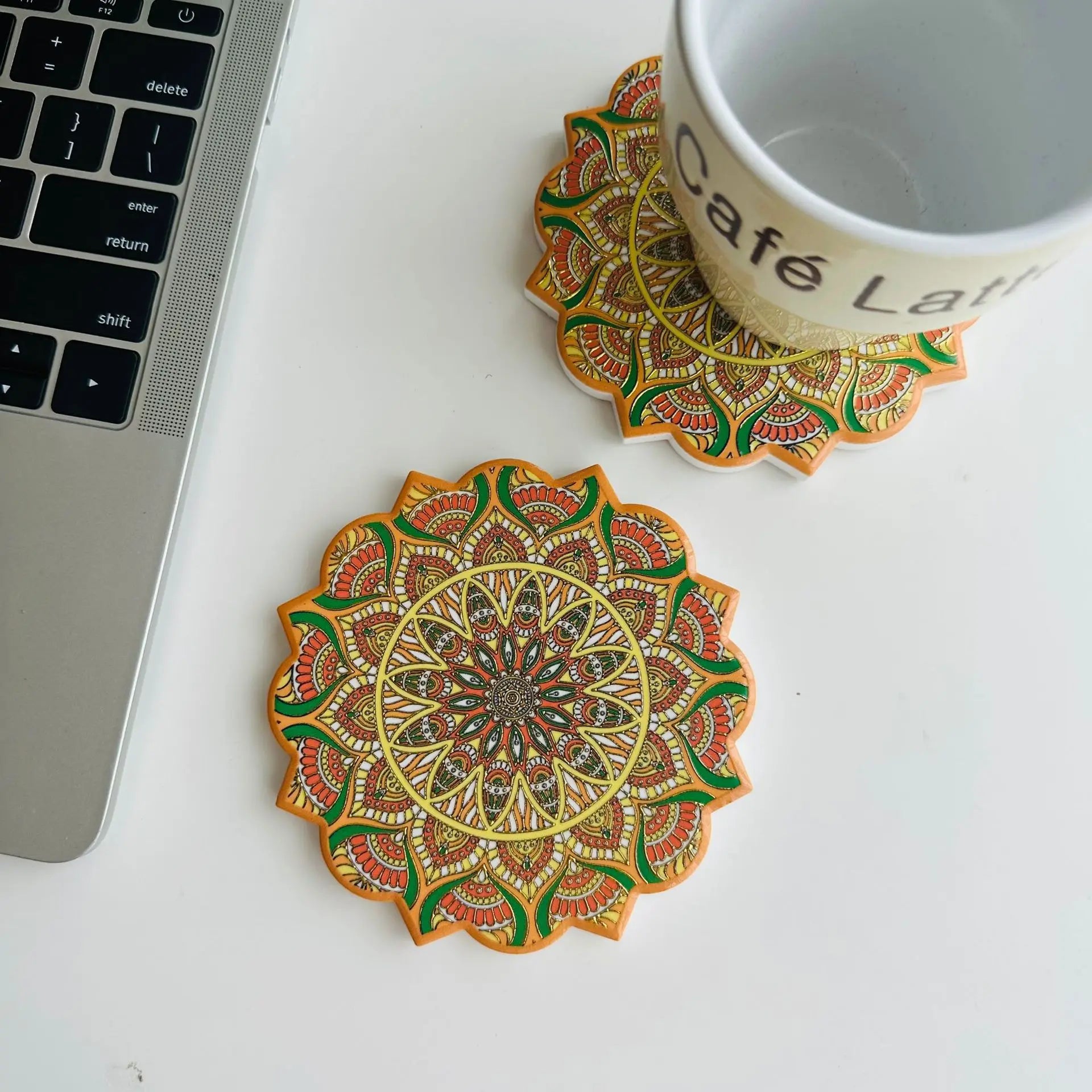 Achteckige Keramik Untersetzer mit Mandala Relief für Tischschutz