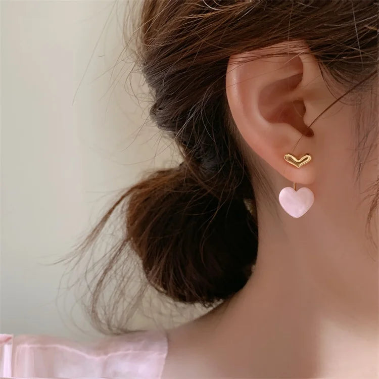 Romantische Rosa Acryl Herz Tropfen Ohrringe für Damen