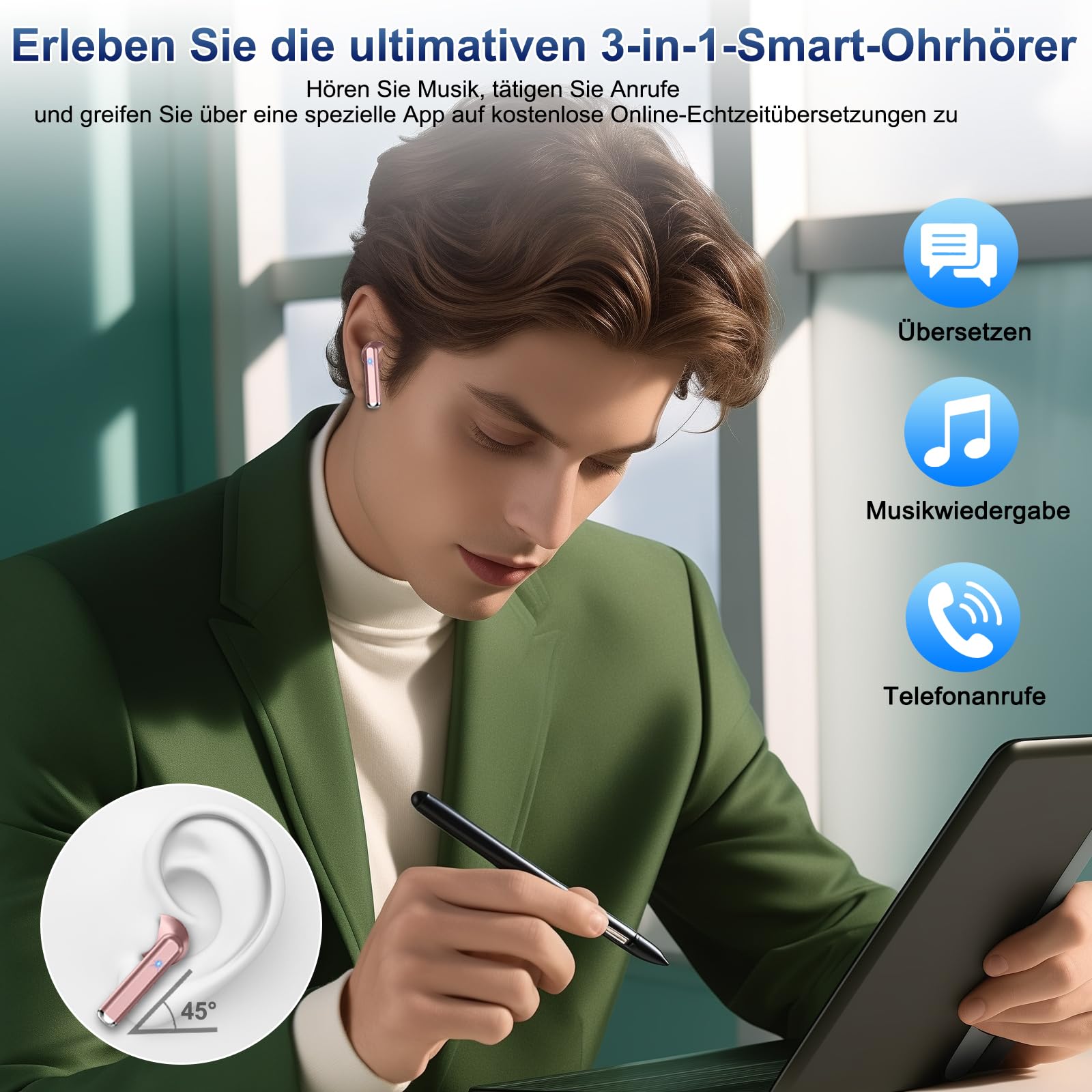 Diese kabellosen Übersetzer Kopfhörer bieten eine hochpräzise Echtzeitübersetzung in 164 Sprachen kombiniert mit klarem HD-Klang für Anrufe und Musik. Perfekt geeignet für Reisen, Geschäftstermine und Sprachtraining.