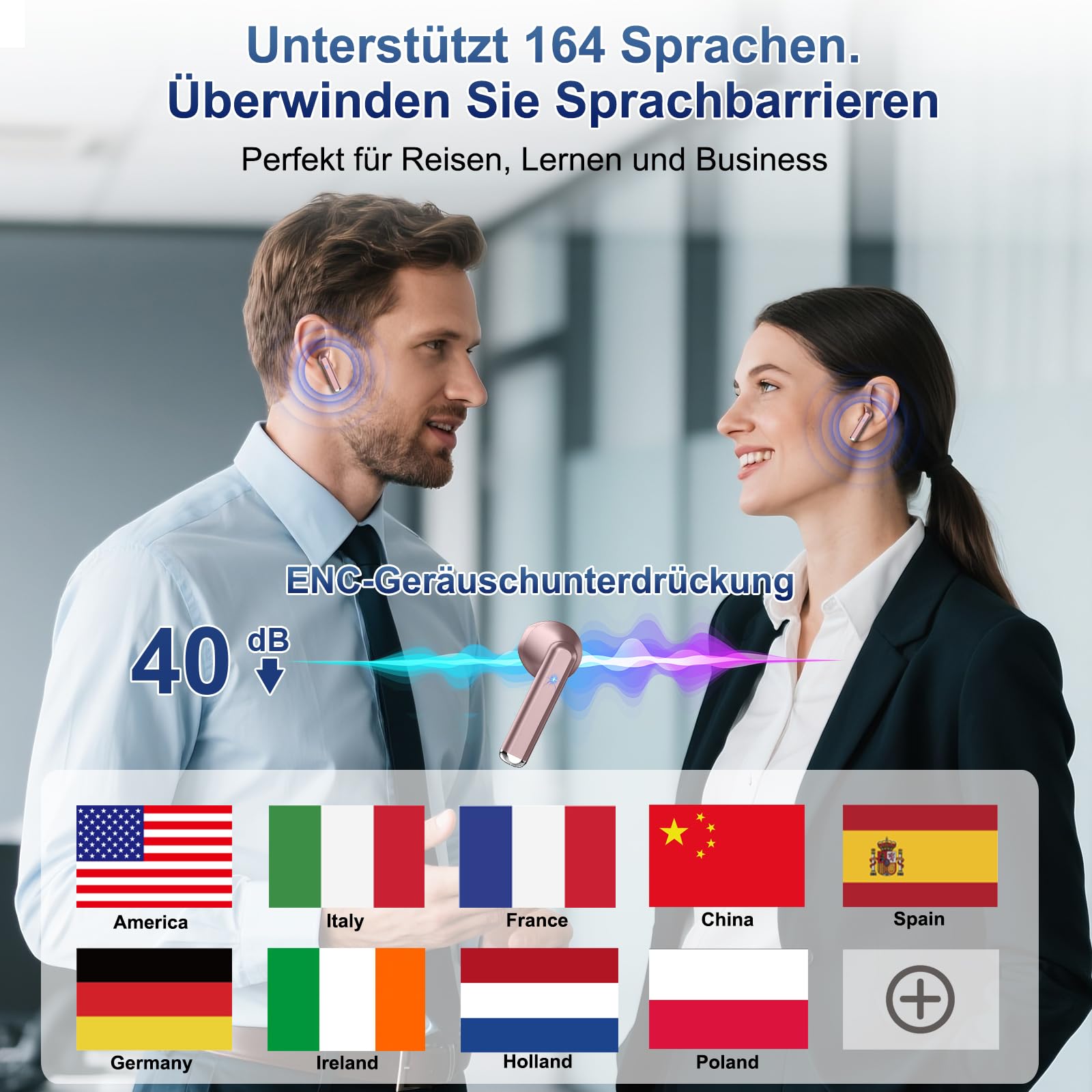 Kabellose Übersetzer Kopfhörer Bluetooth 5.4 mit 164 Sprachen Ech