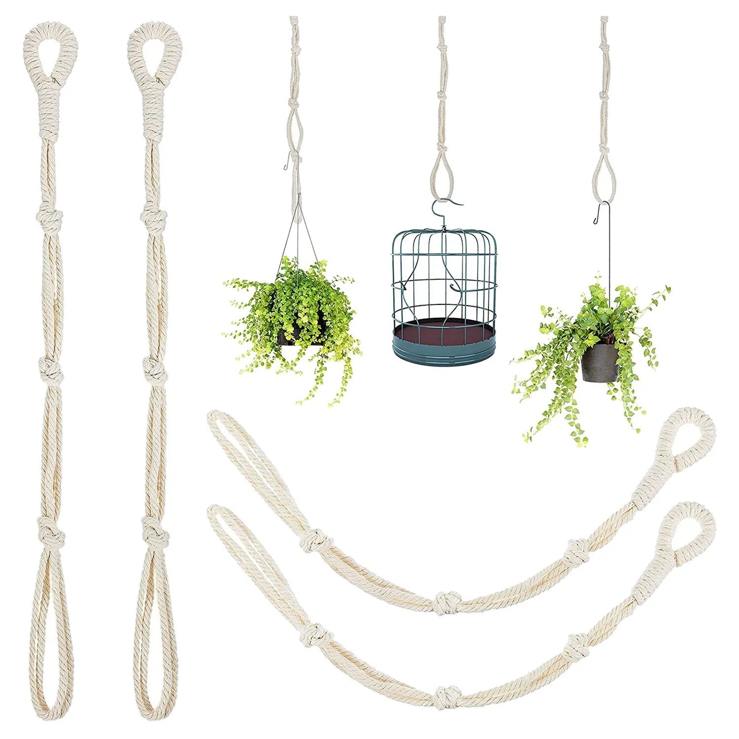 Makramee Pflanzenaufhänger 4er Set mit Verlängerungsseilen Beige