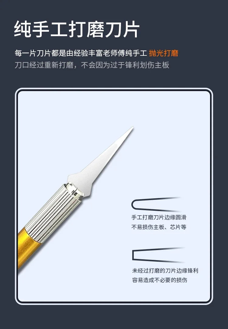 Dieses rutschfeste Metall Skalpell eignet sich ideal zum Entfernen von Kleber und präzisen Arbeiten an Handy-Motherboards und Leiterplatten (PCB). Perfekt für technikaffine Heimwerker und Profis im Elektronikbereich.