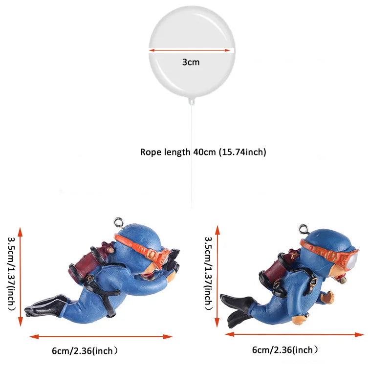 Aquarium Harz Deko Set: Mini Taucher mit Schwimmkugel & Leucht-Effekt