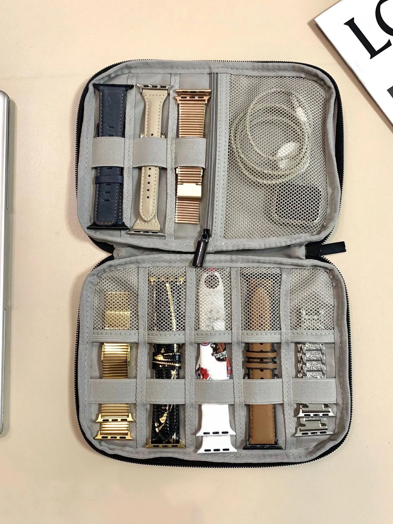Diese Armband Tasche bietet eine praktische Lösung zur Aufbewahrung und zum Schutz von Smartwatch Armbändern. Ideal für Reisen und den täglichen Gebrauch, sorgt sie für Ordnung und einfache Handhabung.