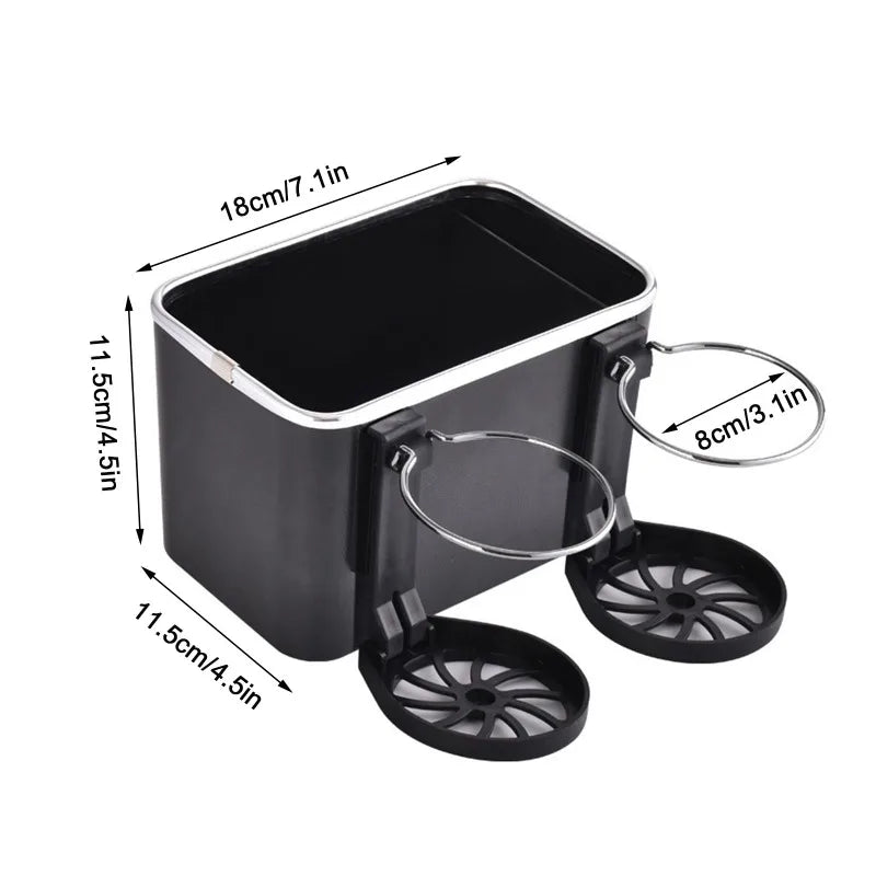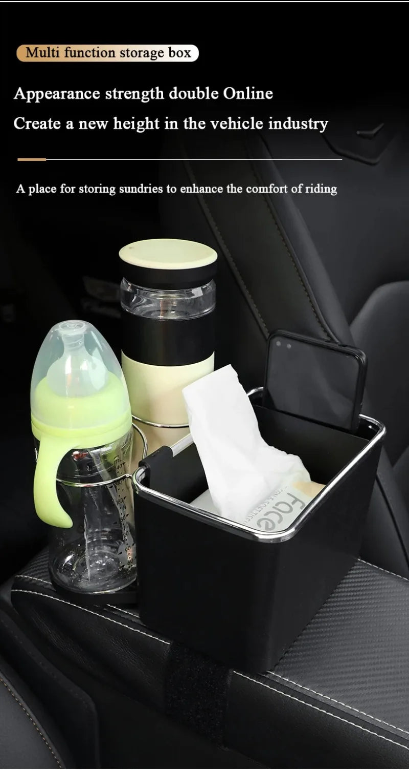 Sie suchen eine einfache Lösung, um Ihre wichtigsten Gegenstände im Auto stets griffbereit und ordentlich zu halten? Dieser multifunktionale Organizer besticht durch eine clevere Kombination aus Aufbewahrungsbox und faltbaren Getränkehaltern. Perfekt für eine ordentliche und übersichtliche Autofahrt.