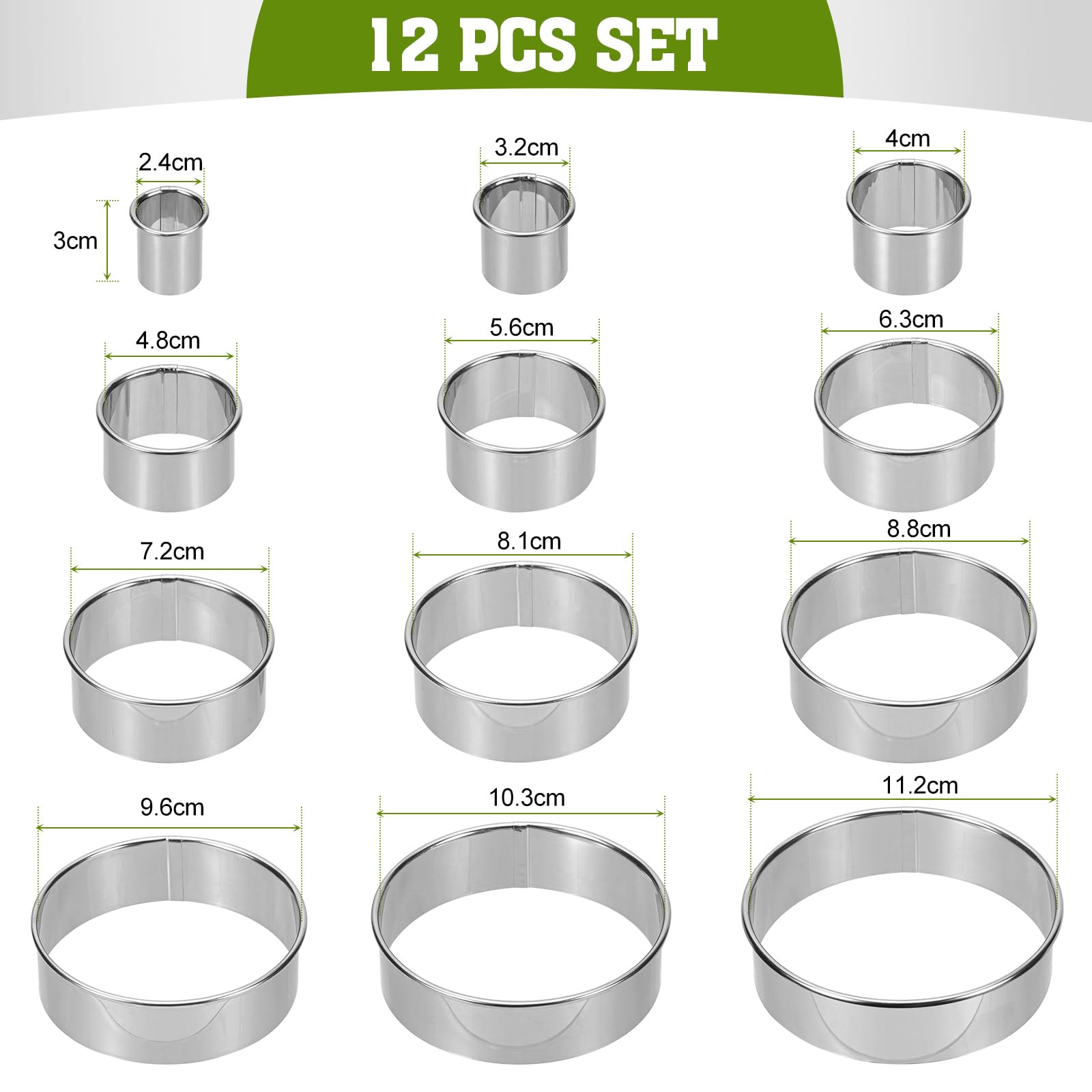 Dieses umfangreiche Ausstechformen-Set bietet Ihnen eine breite Palette an Groessen, die keine Wuensche offenlassen. Sie erhalten ein komplettes 12-teiliges Set, das optimal aufeinander abgestimmt ist. Waegrend die Hoehe der Ausstecher immer gleich ist, variieren die Breiten, um Ihnen maximale Flexibilitaet bei Ihren Backprojekten zu ermoeglichen. Es gibt keine einzelnen Varianten zur Auswahl, sondern das komplette, perfekt zusammengestellte Set.