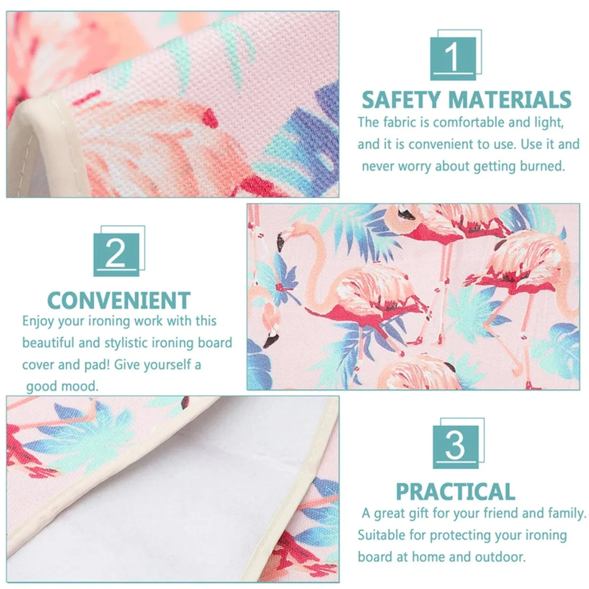 - Polstertuch: Verbessert die Bügeloberfläche und schützt Textilien.