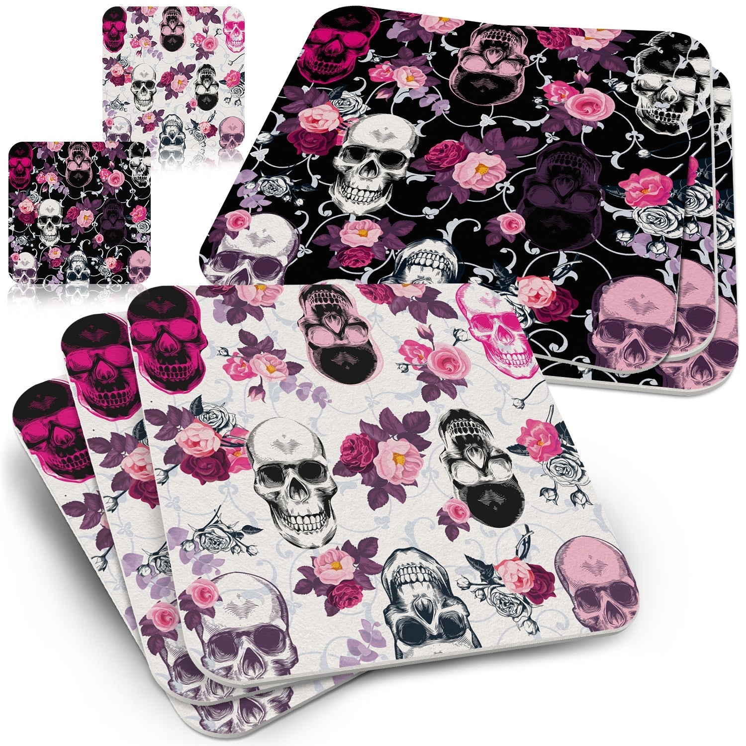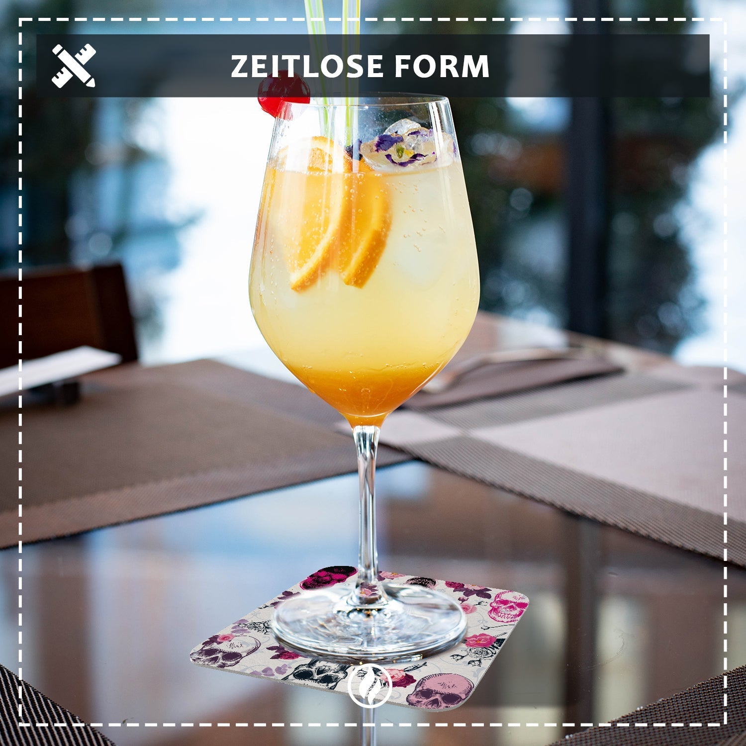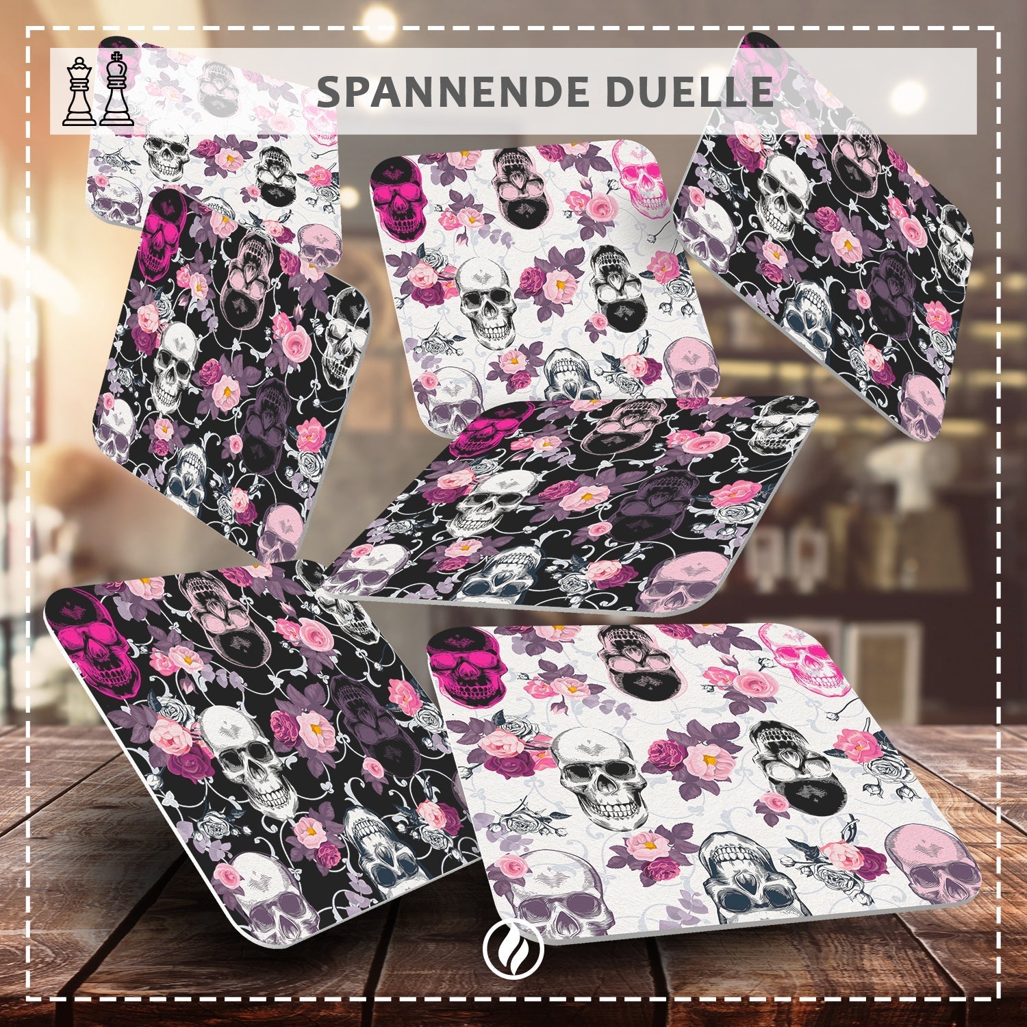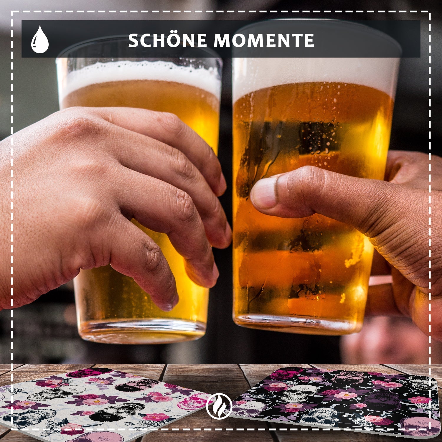 Bierdeckel mit Design Totenkopf - Untersetzer mit Totenköpfen im Rockabilly Stil - 50 Stück