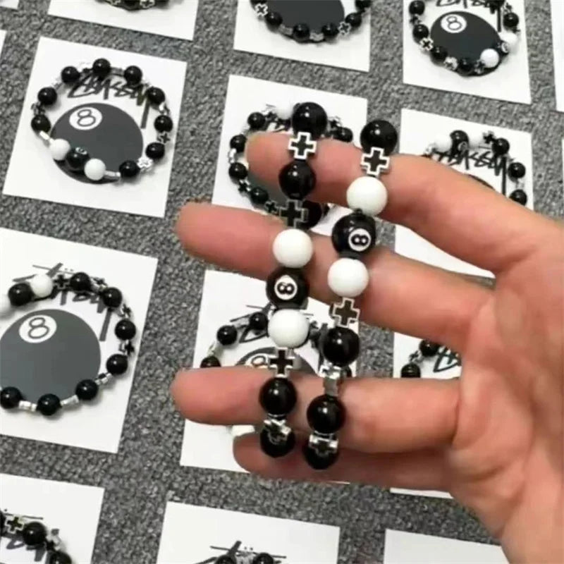 Dieses modische Armband besticht durch schwarze Billard-Kugelperlen und eignet sich gleichermaßen für Männer und Frauen. Das elastische Band mit verstecktem Sicherheitsverschluss garantiert perfekten Sitz und komfortables Tragen im Hip Hop und Grunge Stil.