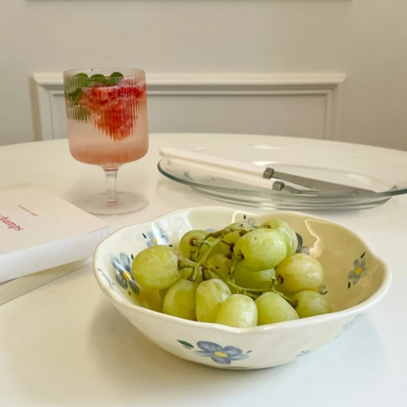 Diese handgemachte Keramikschale überzeugt durch ihr unregelmäßiges Design und eignet sich ideal zum Servieren von Obst, Salaten, Desserts oder Frühstückszutaten wie Joghurt und Haferflocken.