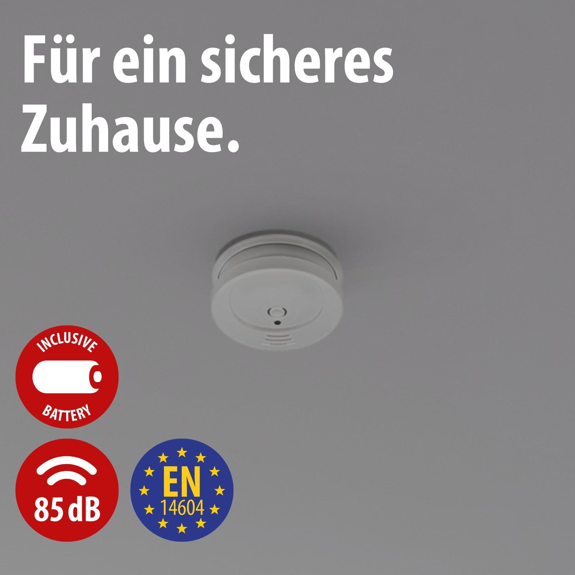 Der Rauchmelder ist mit einer austauschbaren 9 Volt Block Batterie ausgestattet, deren Lebensdauer mindestens ein Jahr beträgt. Im Falle einer Rauchentwicklung gibt der Brandmelder ein lautes, durchdringendes Alarmsignal von 85 Dezibel ab, das auch im Schlaf gut hörbar ist. Das Produkt ist nach der europäischen Norm EN 14604 geprüft und zertifiziert, was Ihnen zusätzliche Gewissheit über seine Zuverlässigkeit gibt. Er lässt sich ideal an der Decke in verschiedenen Räumen wie Schlafzimmer, Wohnzimmer, Kinderzimmer oder Flur montieren und bietet eine diskrete weiße Optik, die sich gut in jede Wohnumgebung einfügt. Im Lieferumfang sind die notwendige Batterie und das passende Befestigungsmaterial enthalten.