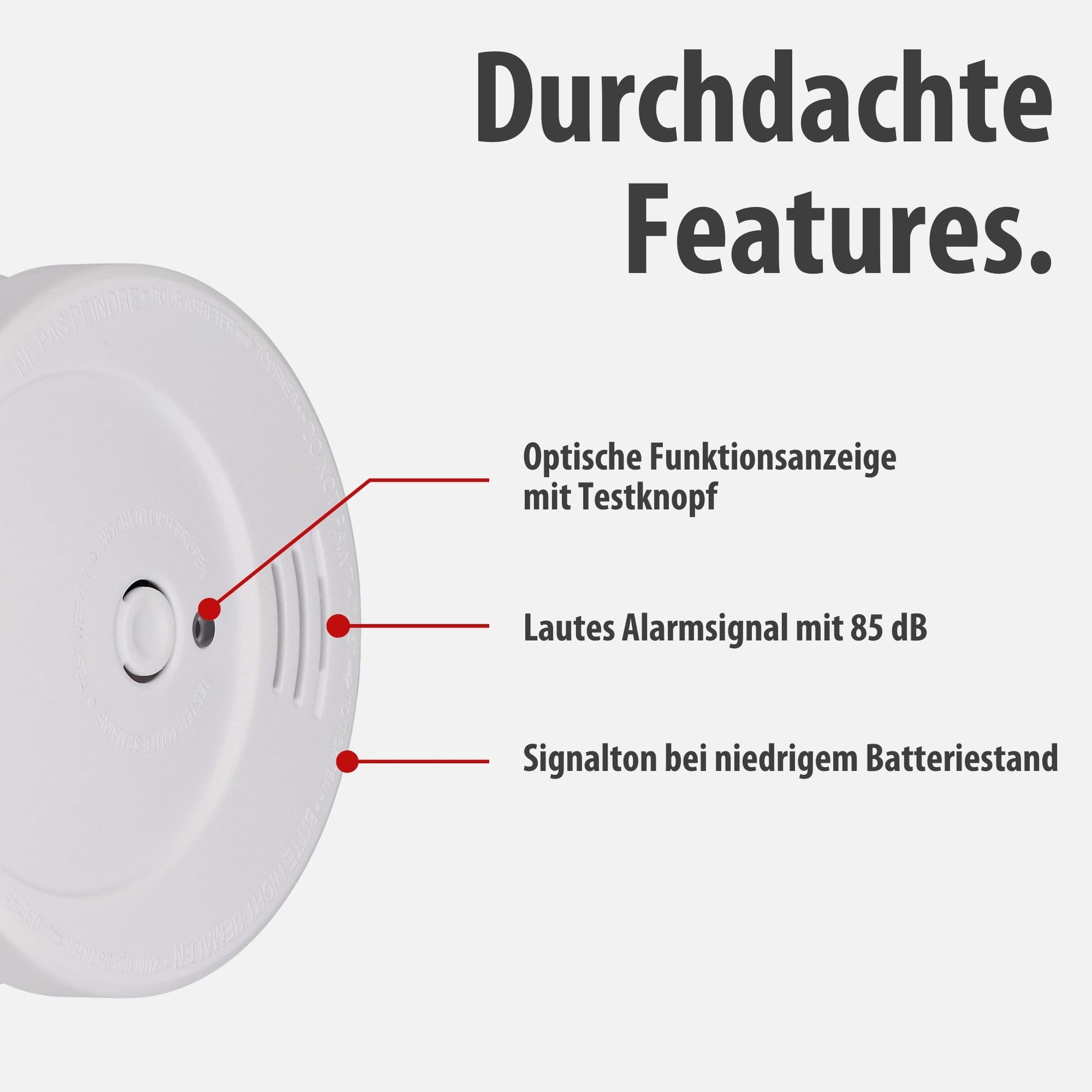 - Lieferumfang: Rauchmelder, eine Batterie, Befestigungsmaterial