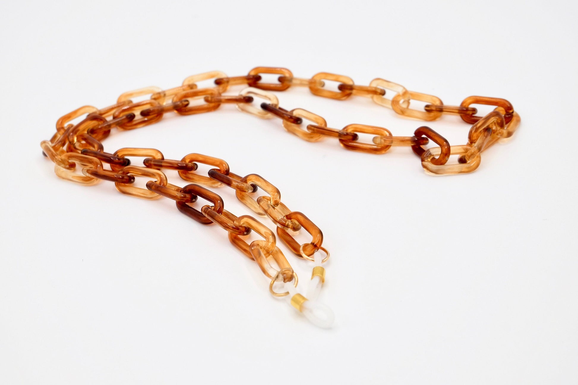 Unsere modische Brillenkette aus hochwertigen Acrylgliedern bietet dir sicheren Halt und verleiht jedem Outfit das gewisse Etwas. Ideal für Sonnen- und Lesebrillen, sorgt sie für Komfort und sorgt dafür, dass deine Brille immer griffbereit ist.