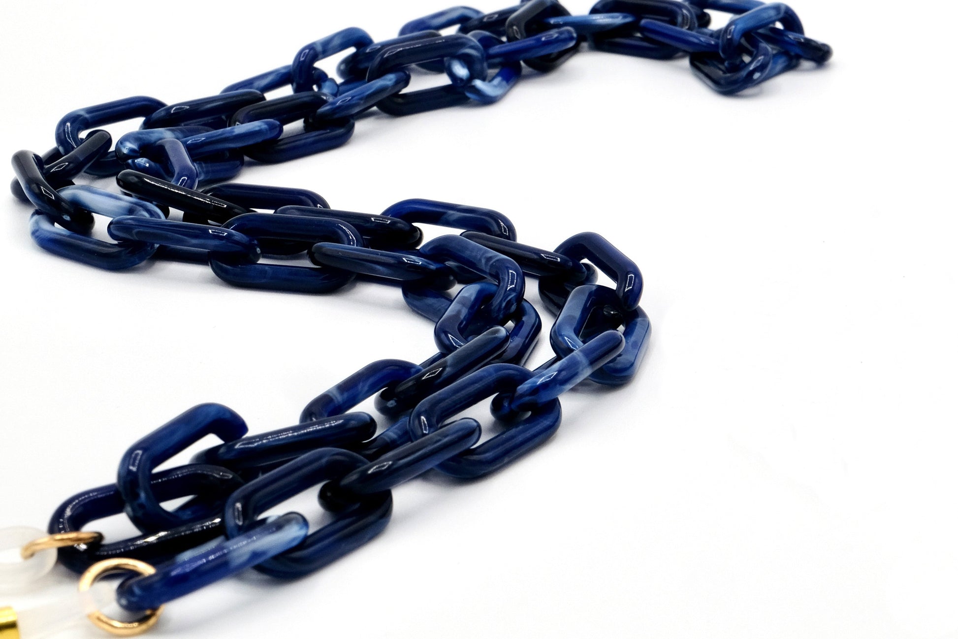 Brillenkette XS Acryl Dunkelblau mit verstellbaren Gummiösen Gold oder Silber
