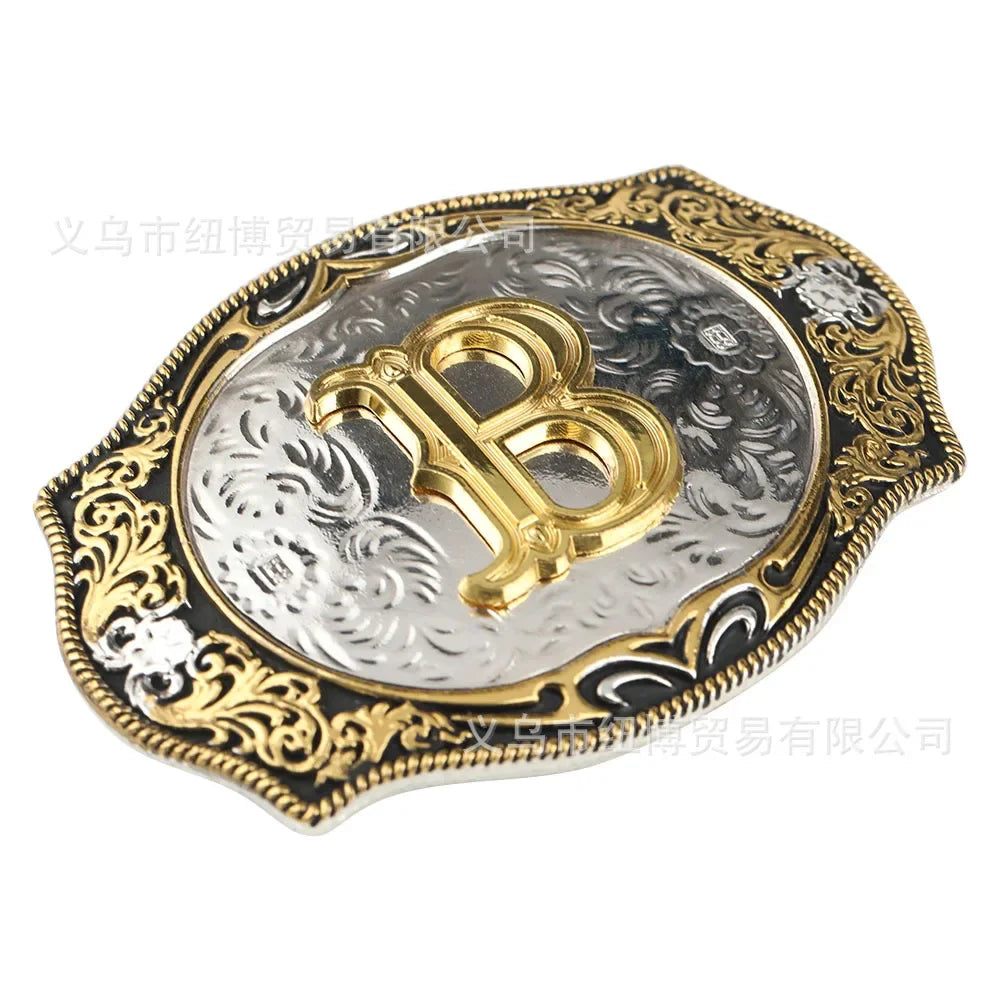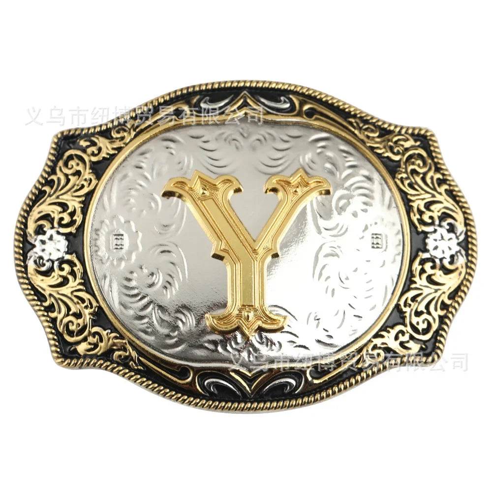 Goldfarbene Legierungs Gürtelschnalle im Western-Stil mit Buchstaben