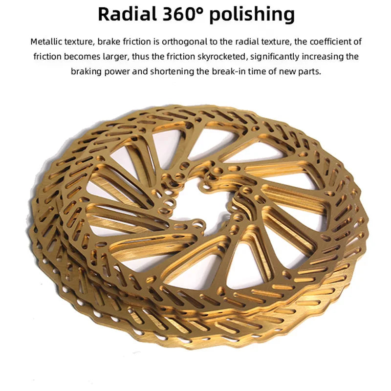 Diese Edelstahl-Scheibenbremse bietet verbesserte Kontrolle und Sicherheit. Ideal für Mountainbikes und Rennräder. Stabile Bremsleistung dank belüftetem Design und effizienter Wärmeableitung, selbst bei Feuchtigkeit.