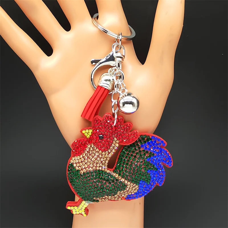 Bunter großer Hahn Schlüsselanhänger mit Kristallbesatz