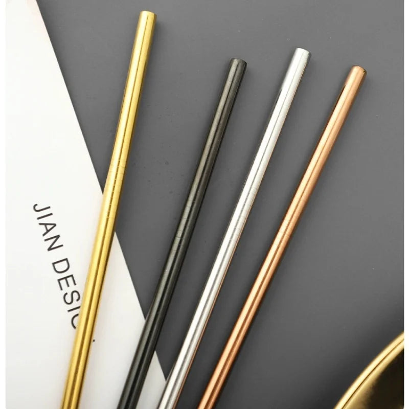 Wiederverwendbare Edelstahl Trinkhalme und Löffel mit Bürste