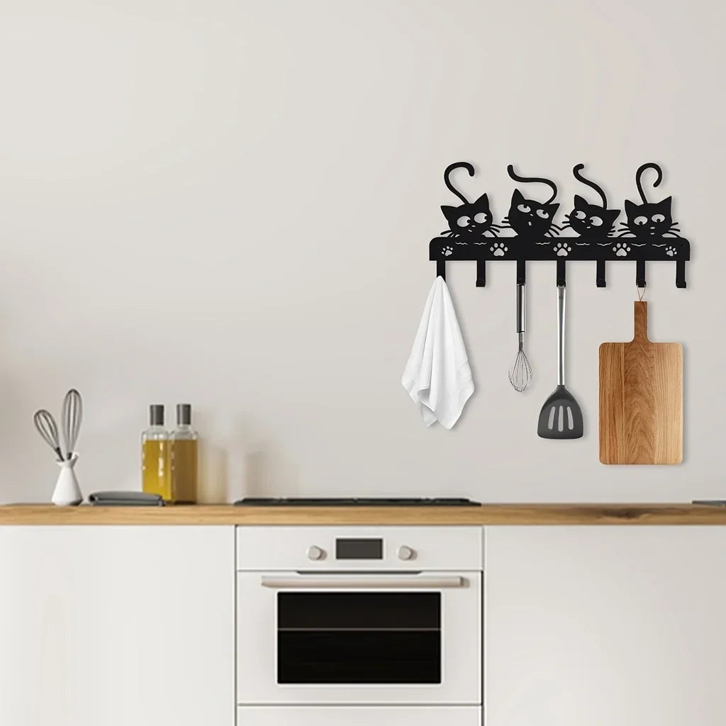 Niedliche Katzen Wandhaken aus Eisen mit 7 Haken für Schlüssel Mäntel