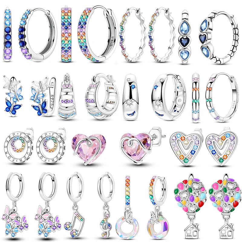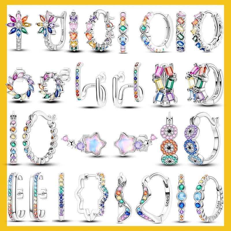 925er Sterlingsilber Creolen mit bunten Zirkon Blumen und Sternen Damenohrringe